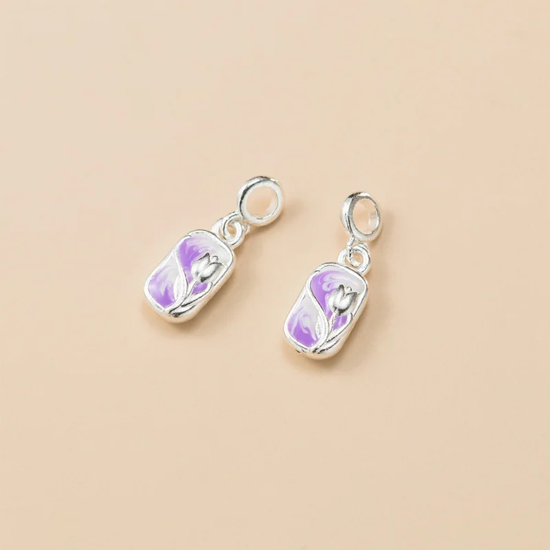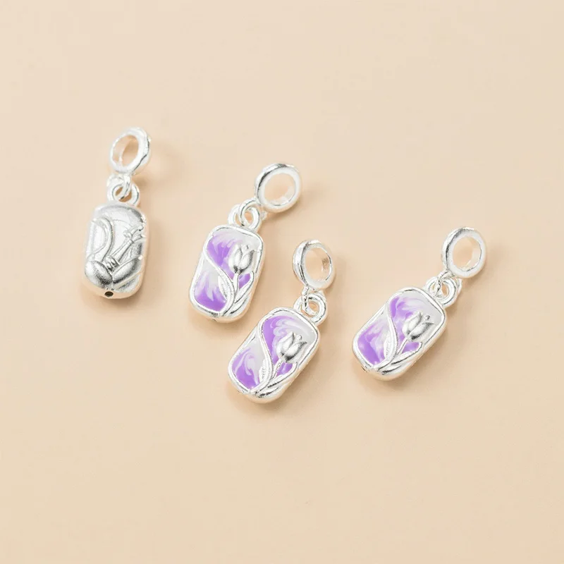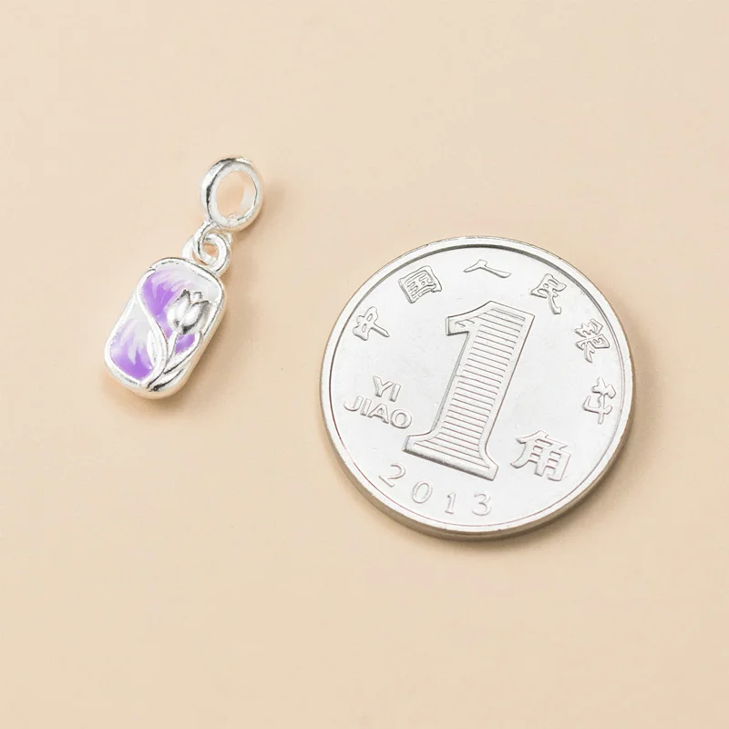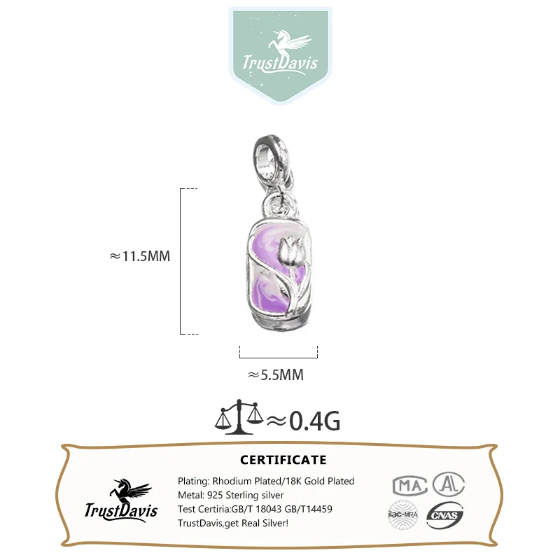 TrustDavis 925 Sterling Silver Fashion Classic Cute Square Tulip Pendant DIY Necklace Bracelet Accessories Fine Jewelry DZ1843