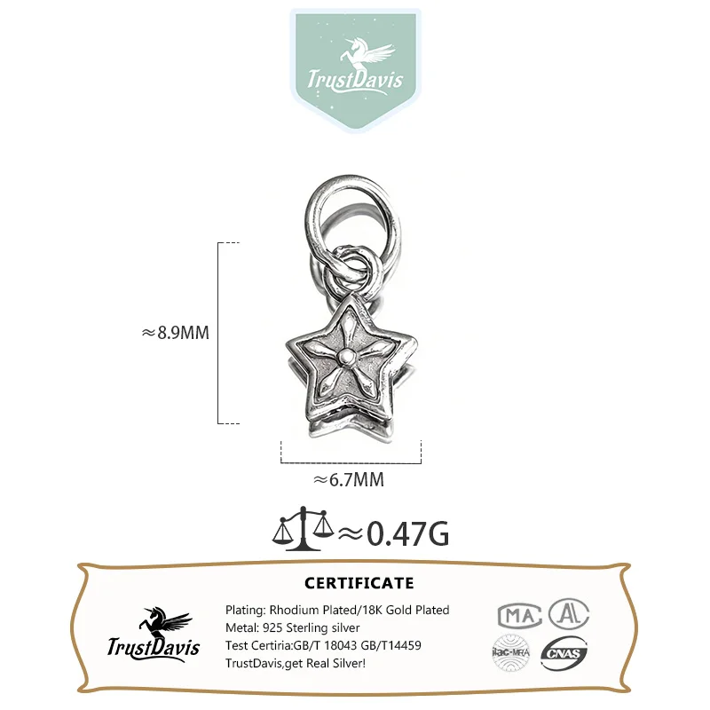 TrustDavis 925 Sterling Silver Fashion Classic Cute Vintage Star Pendant DIY Necklace Bracelet Accessories Fine Jewelry DZ1840