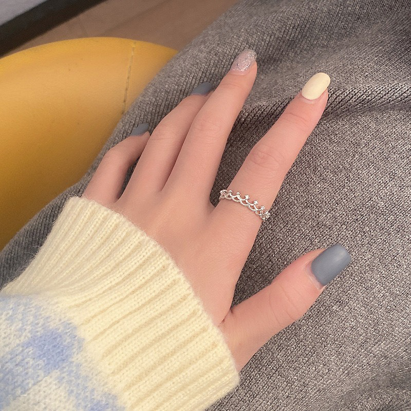 TrustDavis 925 Sterling Silver Fashionable and Luxurious Crown Open Ring for Women Girls Jewelry Gift DS4795
