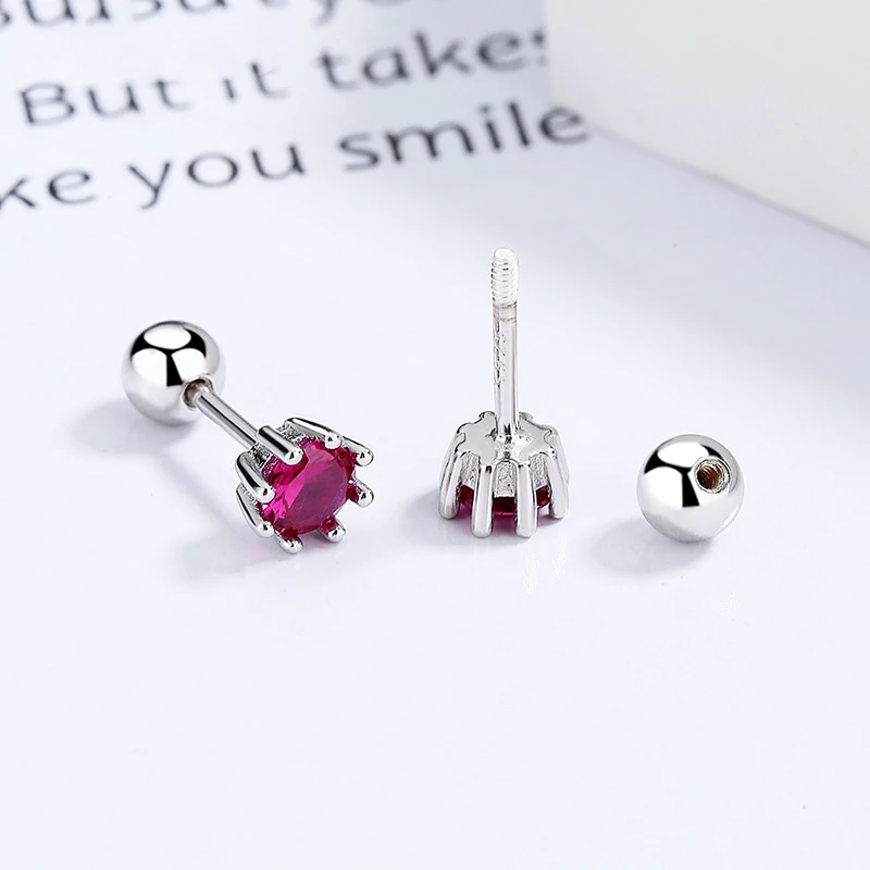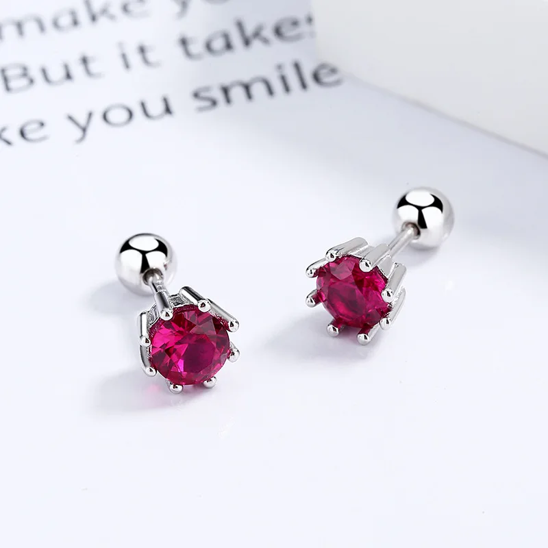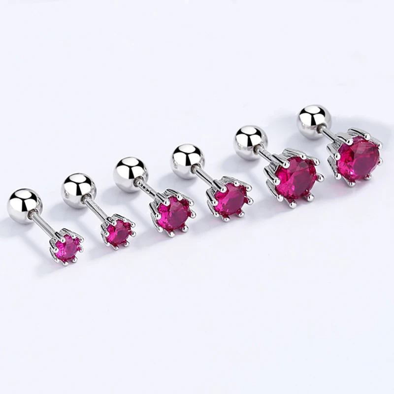 Fashion Eight Claw 4/5/6mm Rose Red CZ Screw Stud Earrings DA2584