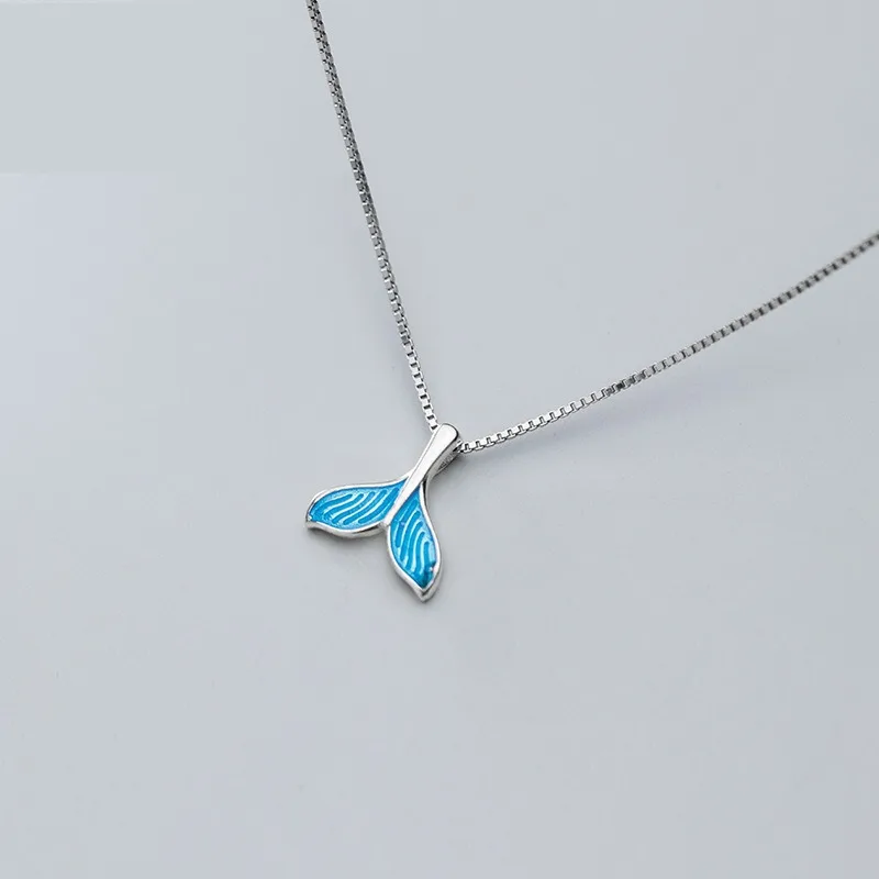 TrustDavis Real 925 Sterling Silver Cute Blue Fish Tail Pendant Handmade DIY Necklace Bracelet Accessories Fine Jewelry DZ1734