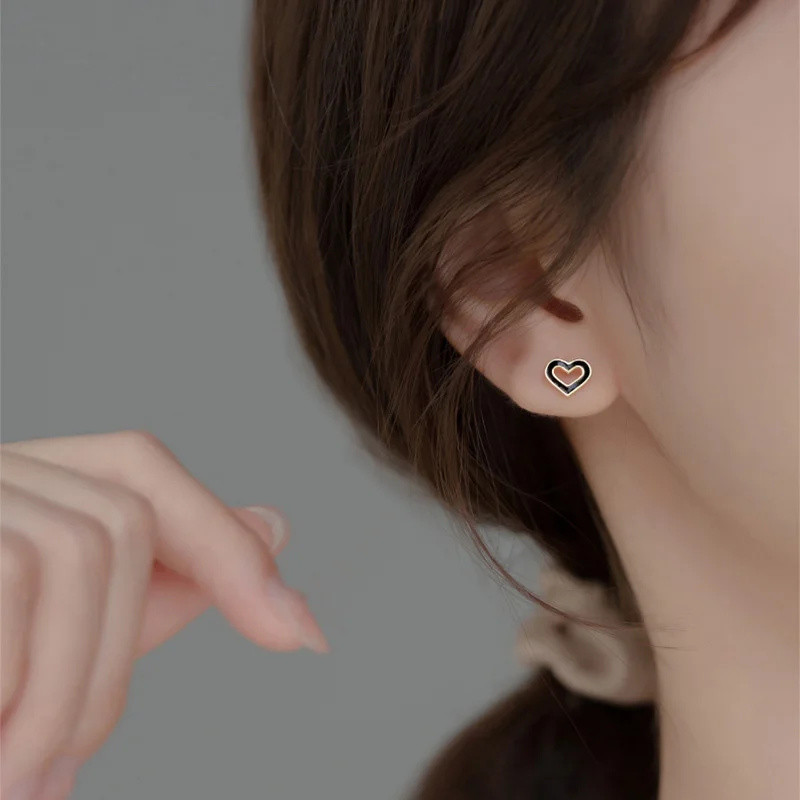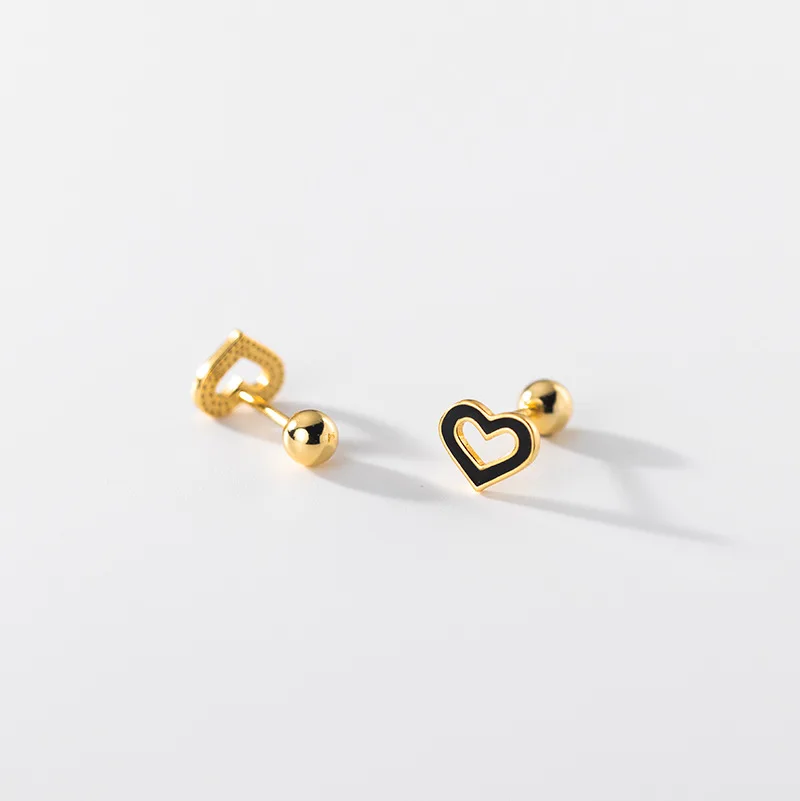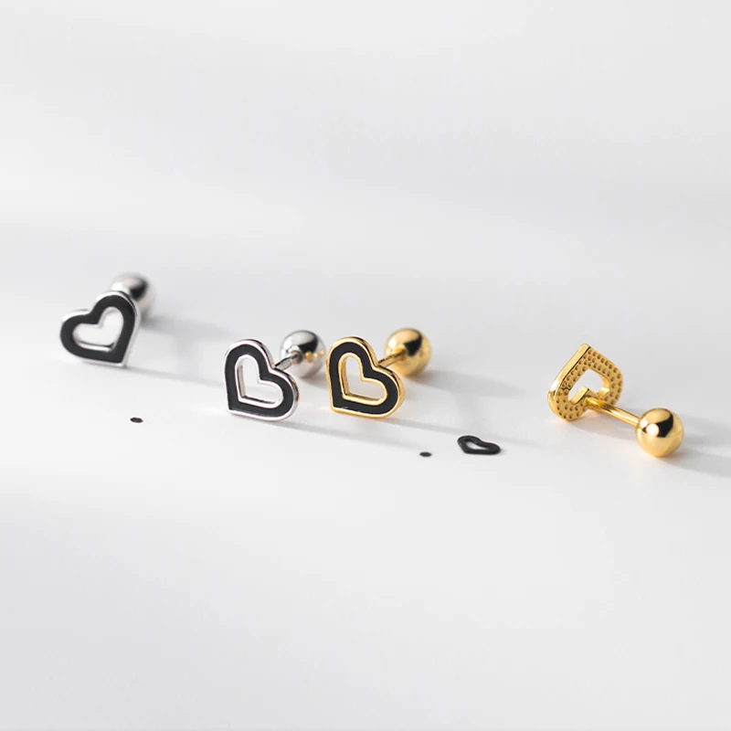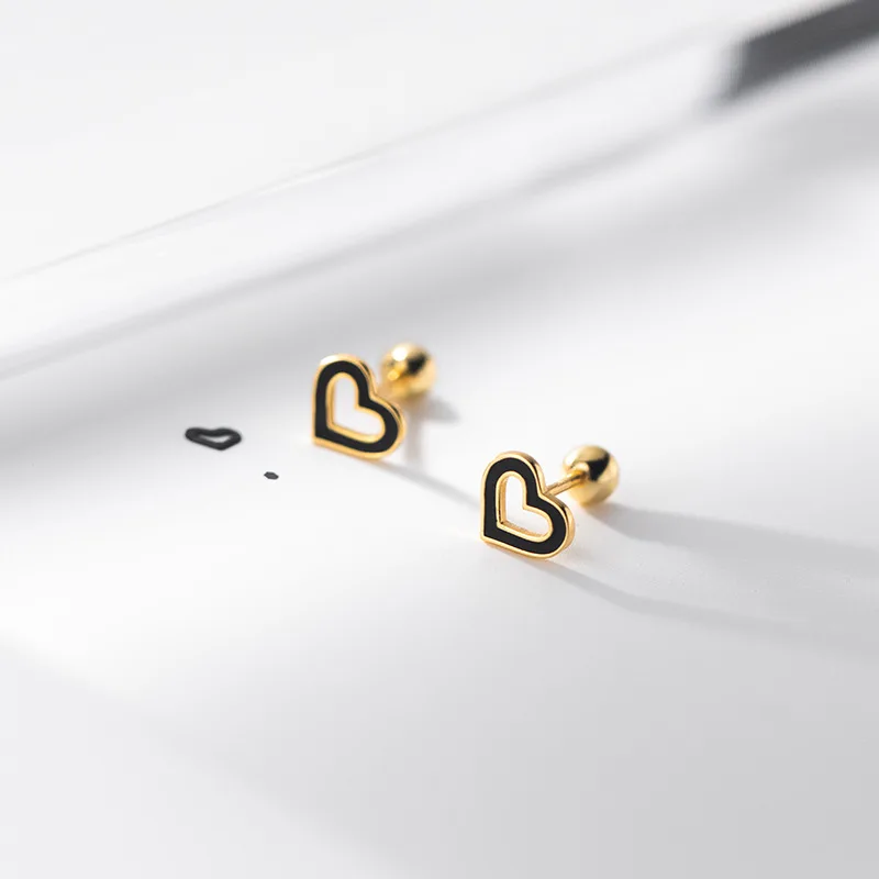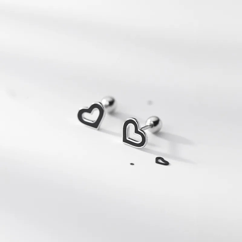Black Heart Beads Screw Stud Earring DA2814