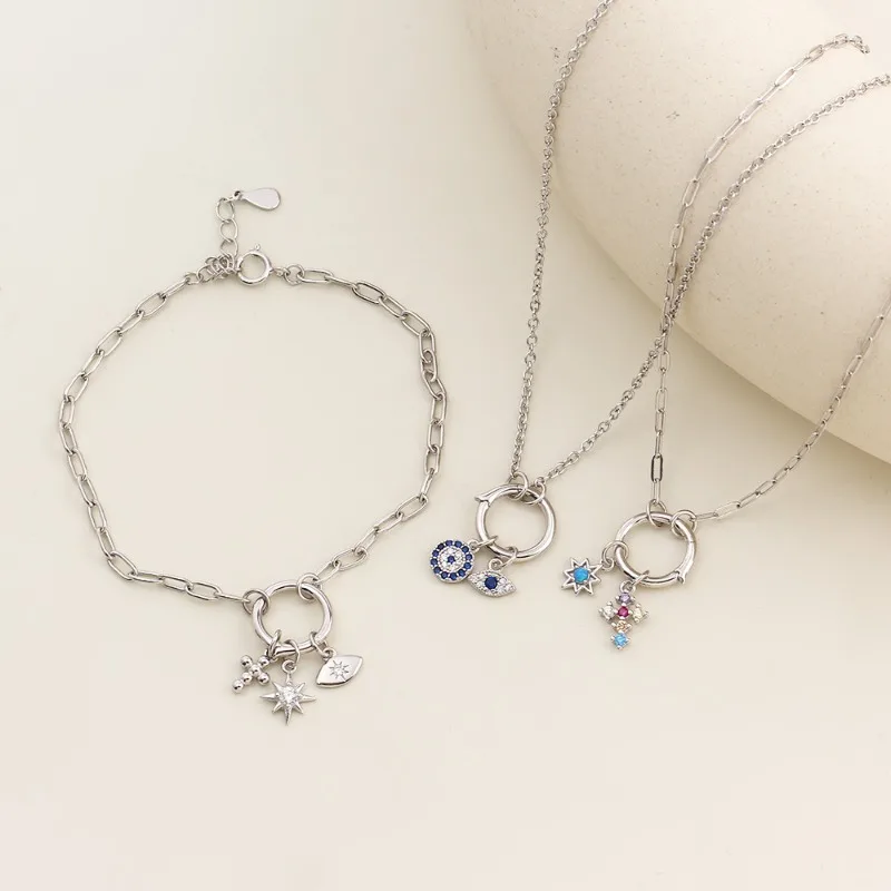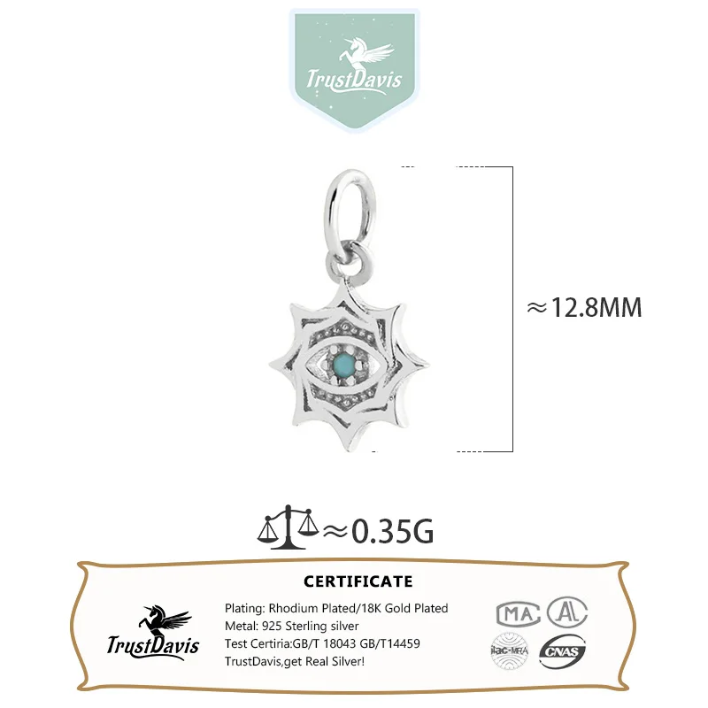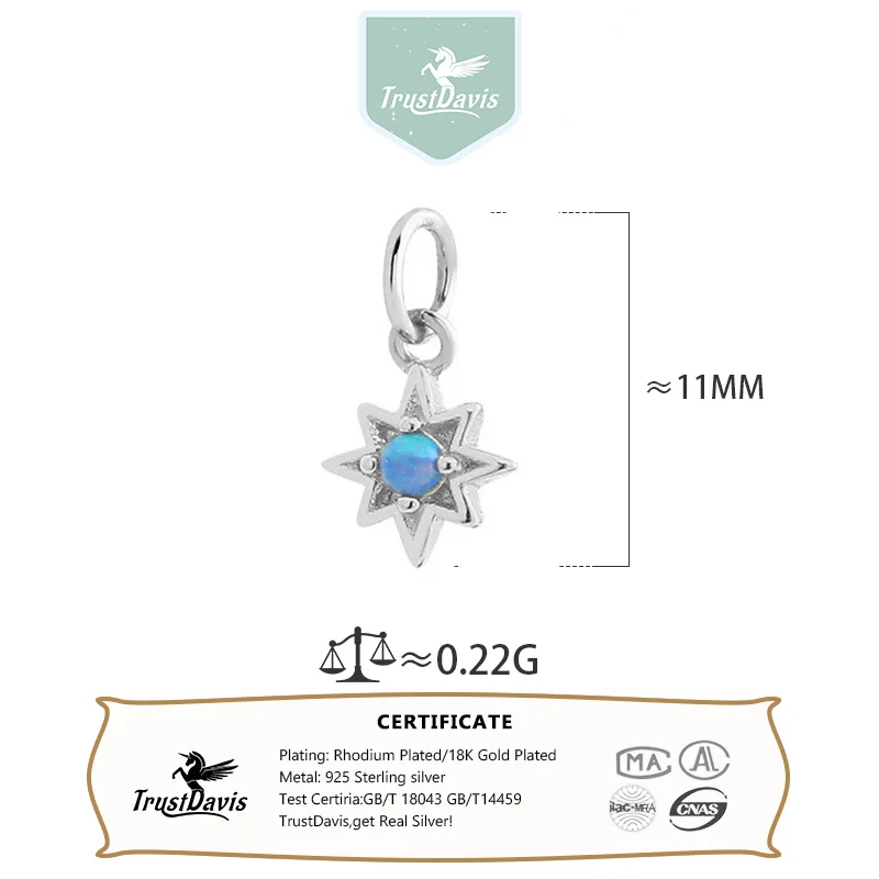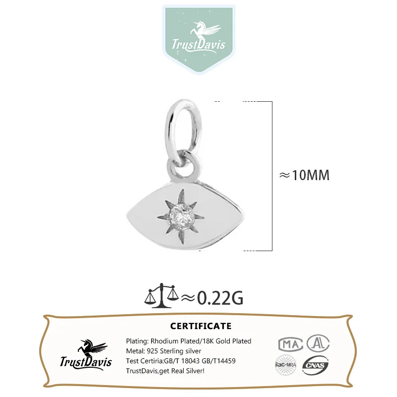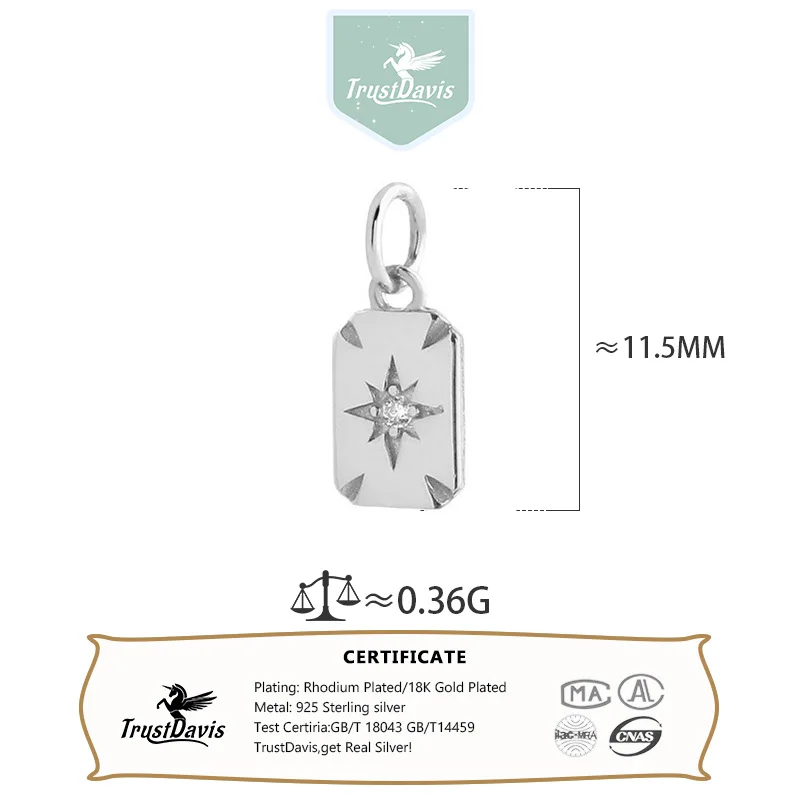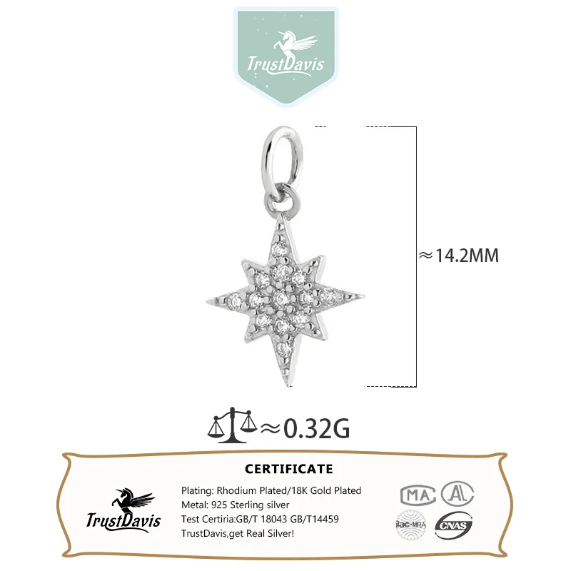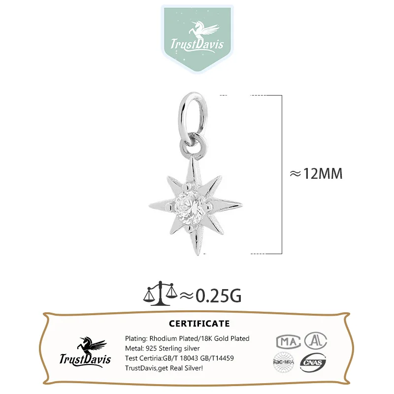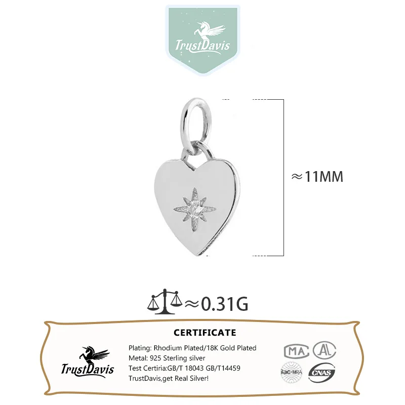 TrustDavis Real 925 Sterling Silver Fashion Cute Heart Star Charm Pendant Handmade DIY Accessories Fine Jewelry Wholesale DZ1813