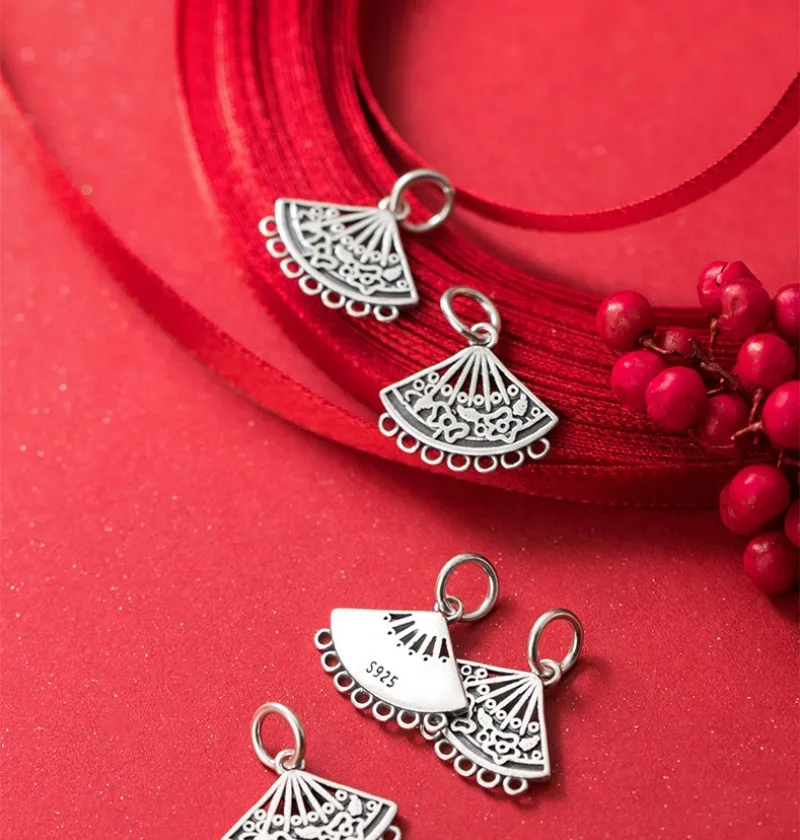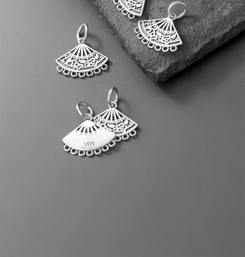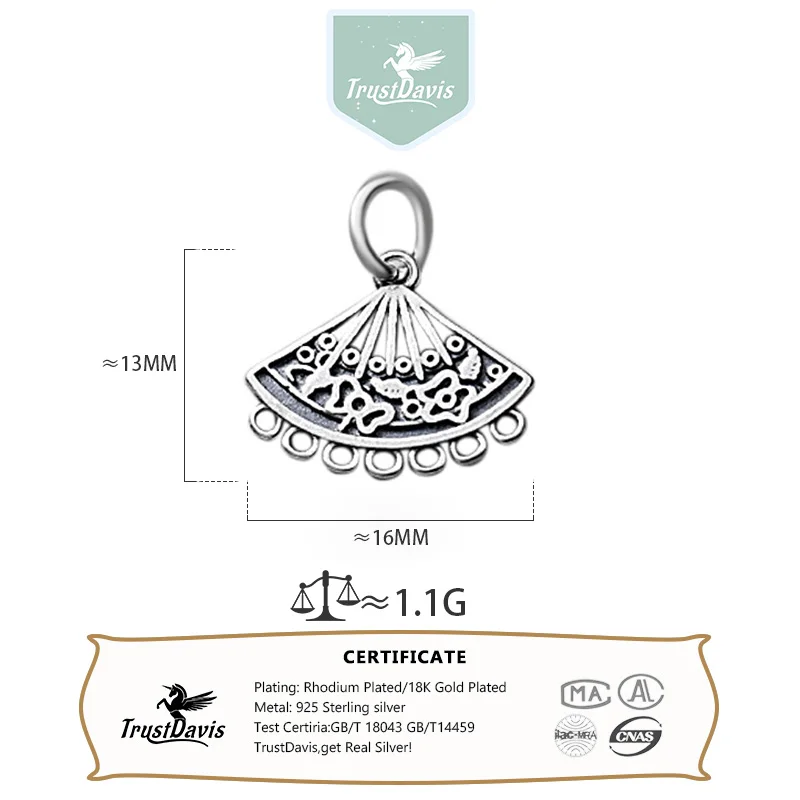 TrustDavis Real 925 Sterling Silver Fashion Hollow Sector Charm Pendant Handmade DIY Accessories Fine Jewelry Wholesale DZ1741