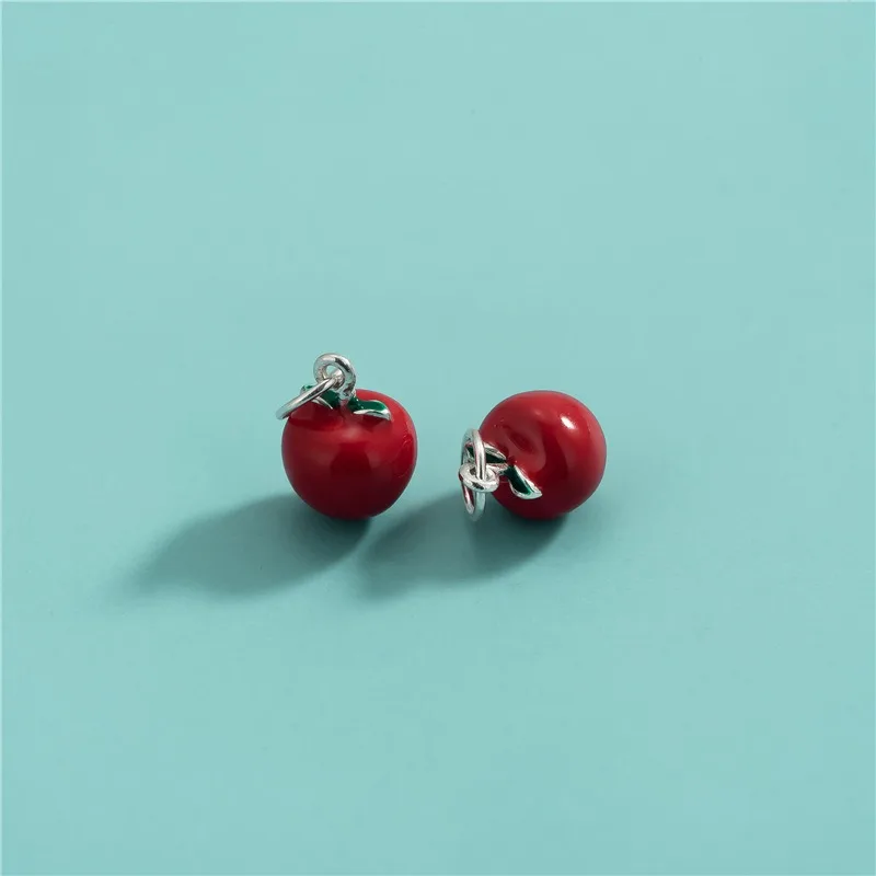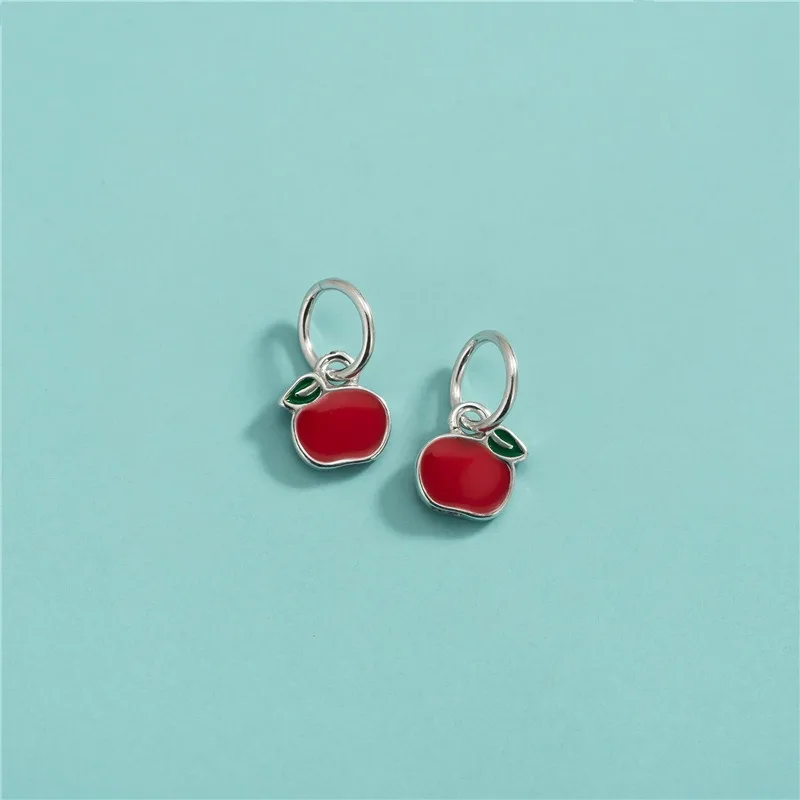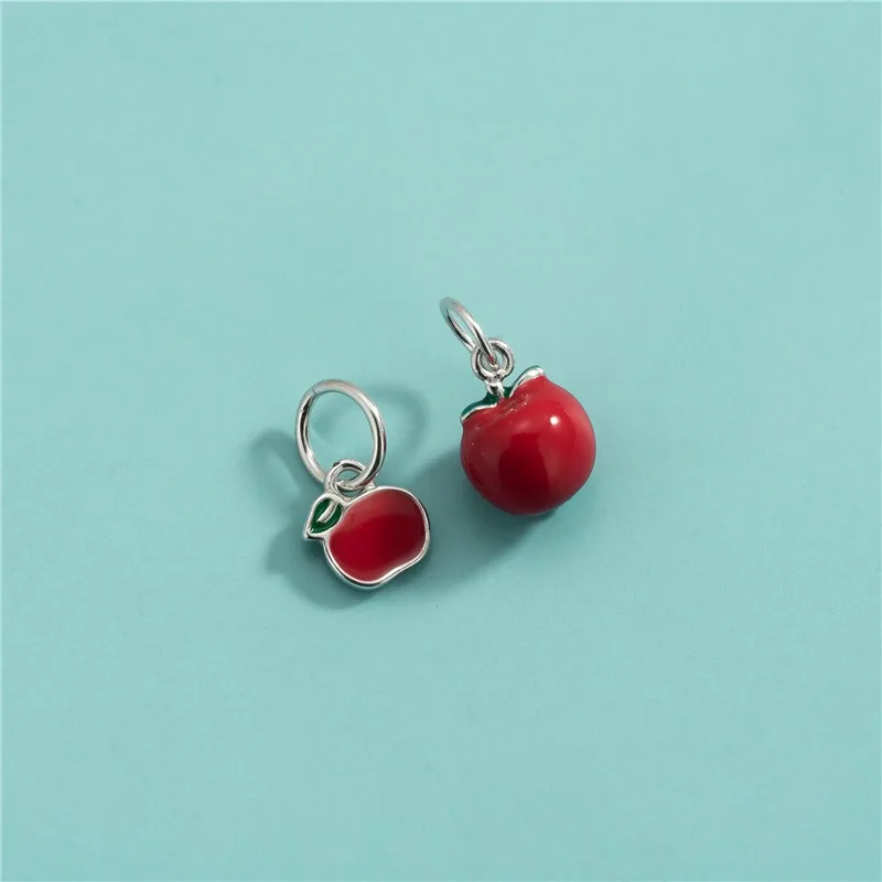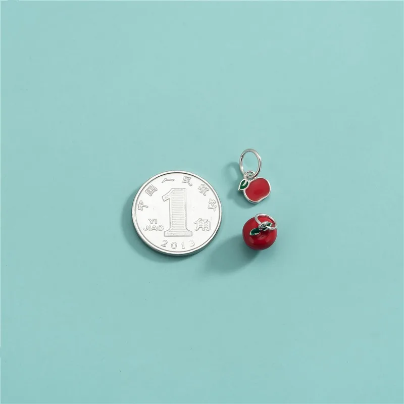 TrustDavis Real 925 Sterling Silver Fashion Red Apple Charm Pendant Handmade DIY Accessories Fine Jewelry Wholesale DZ1743