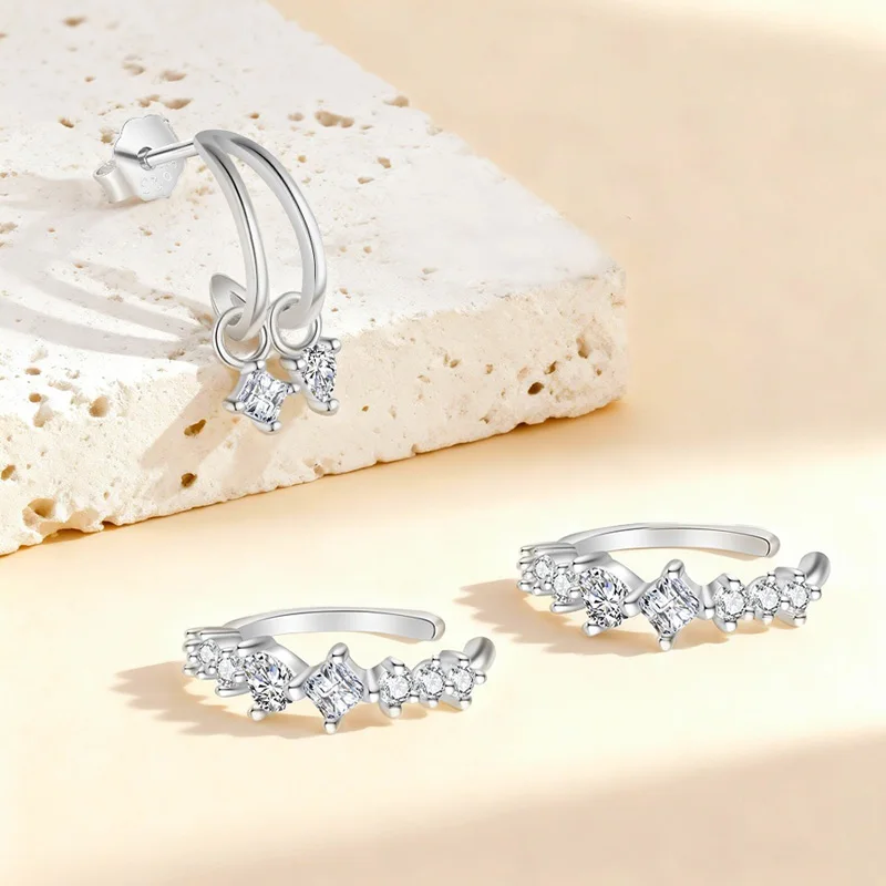 Star Moon Zircon Single Clips Earrings DS4749