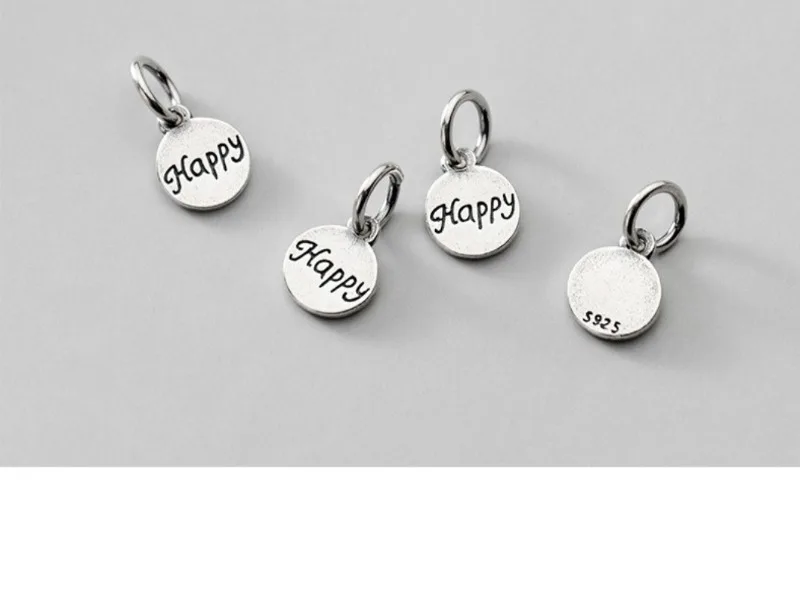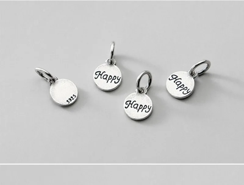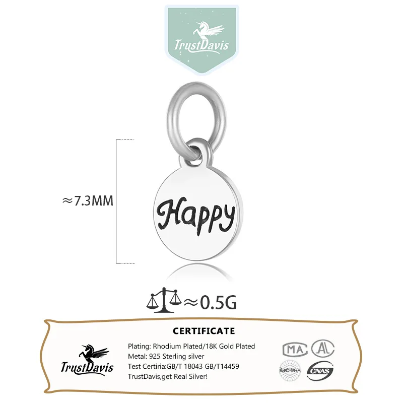 TrustDavis Real 925 Sterling Silver Fashion Sweet Wafer Happy Charm Pendant Handmade DIY Accessories Jewelry Wholesale DZ105