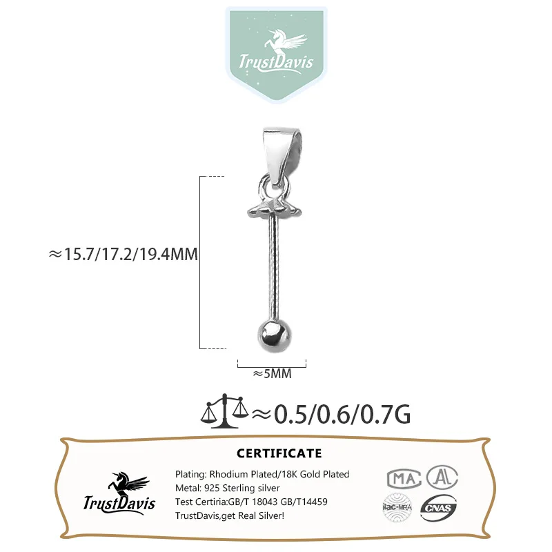 TrustDavis Real 925 Sterling Silver Twist bead Ball Clip DIY Jewelry Accessories K-gold Plated Rope Jade Pendant Button DZ1794