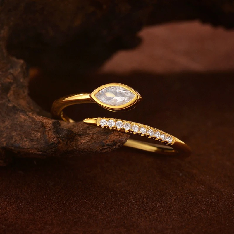TrustDavis Real 925 Sterling Silver Women's Ring Fashion Simple Snake-shaped Zircon Open Ring for Women Girl Jewelry Gift DS4654