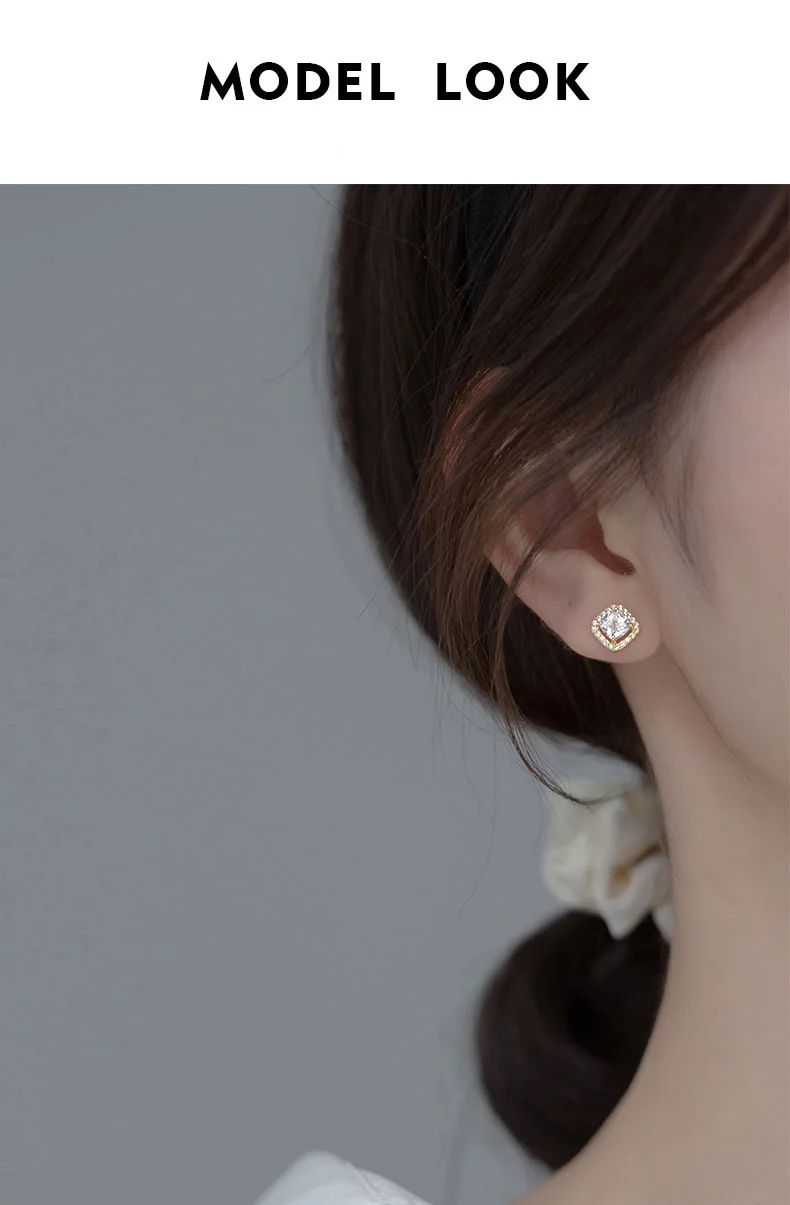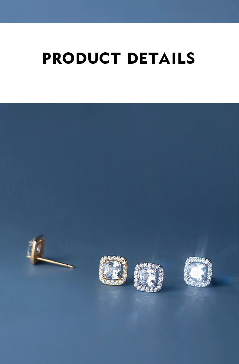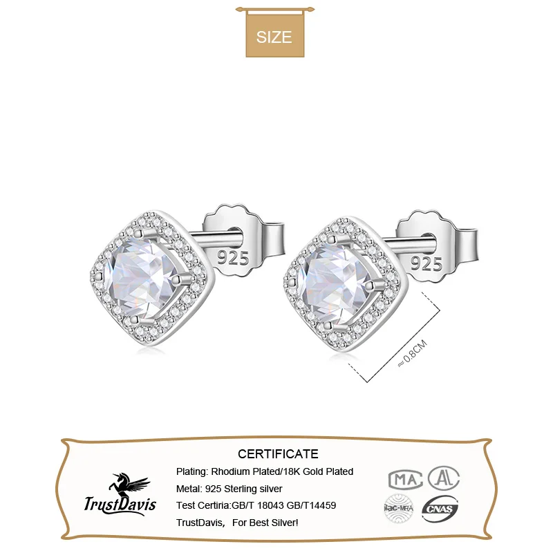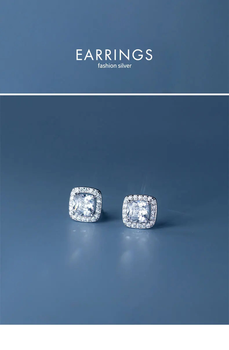 Real 925 Sterling Silver Square Dazzling CZ Stud Earrings DA2925