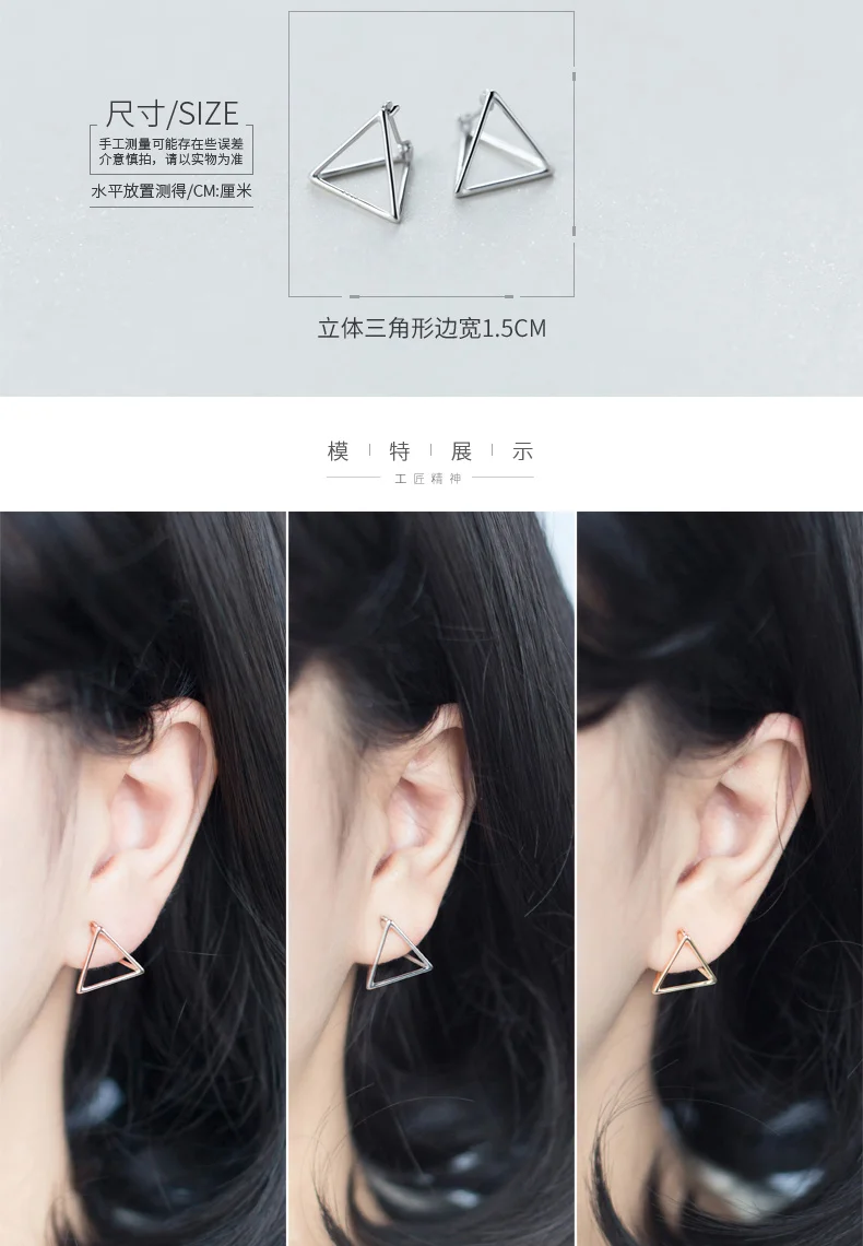 Earrings 3D Triangle Stud Earring 1Pair Women Girls Fashion Jewelry DS1274