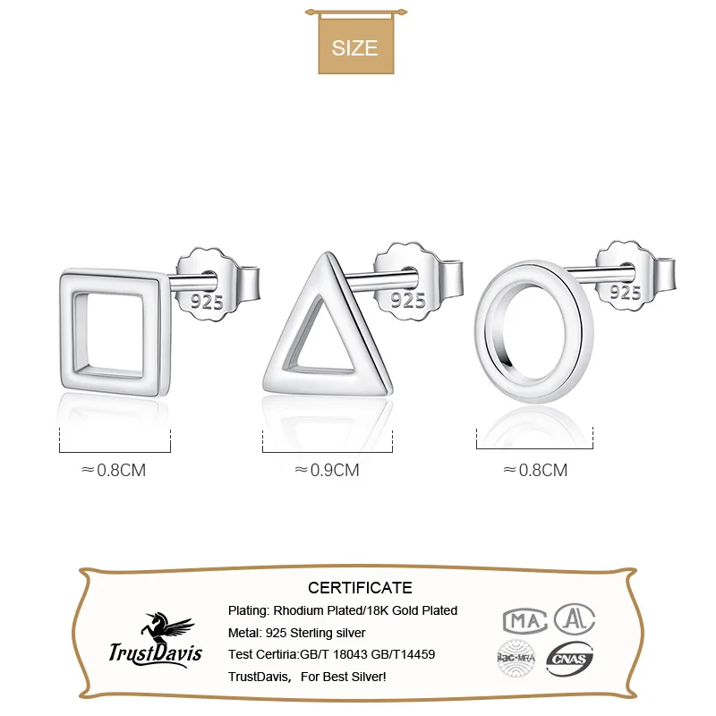 Fashion Cute Tiny Round Square Triangle Stud Earrings DS46
