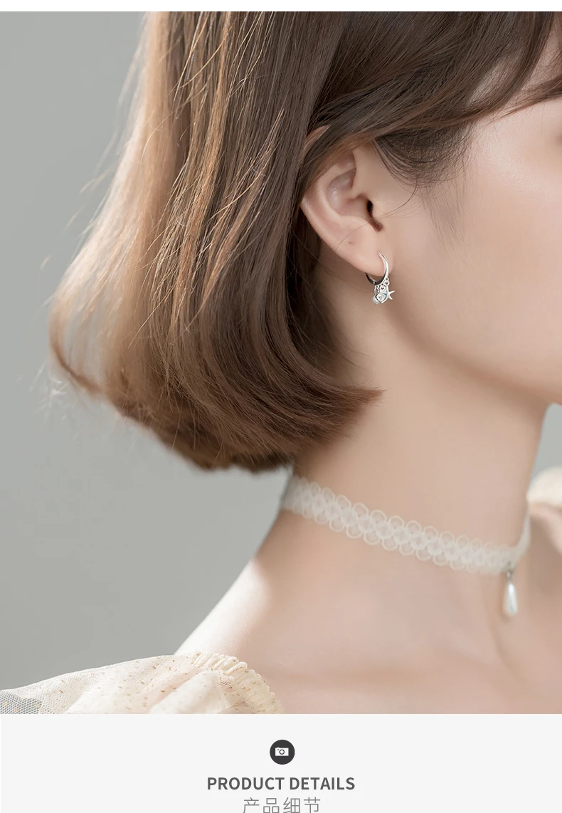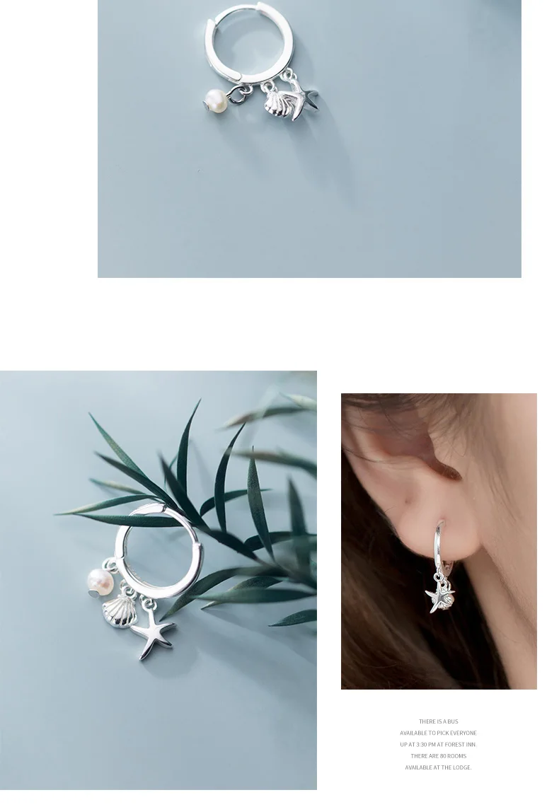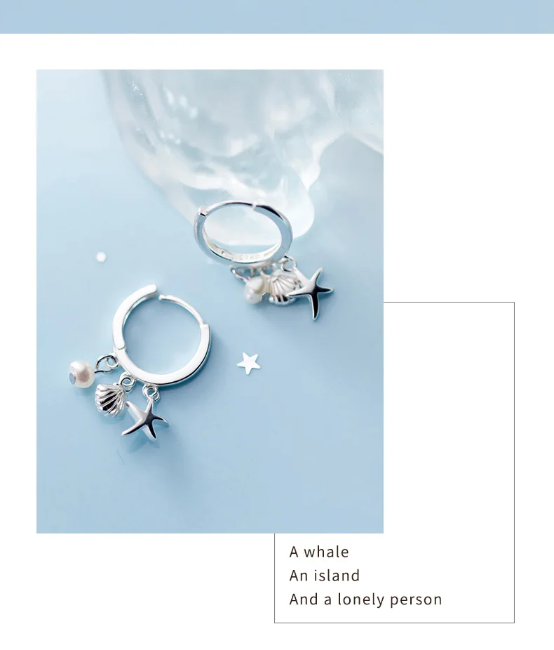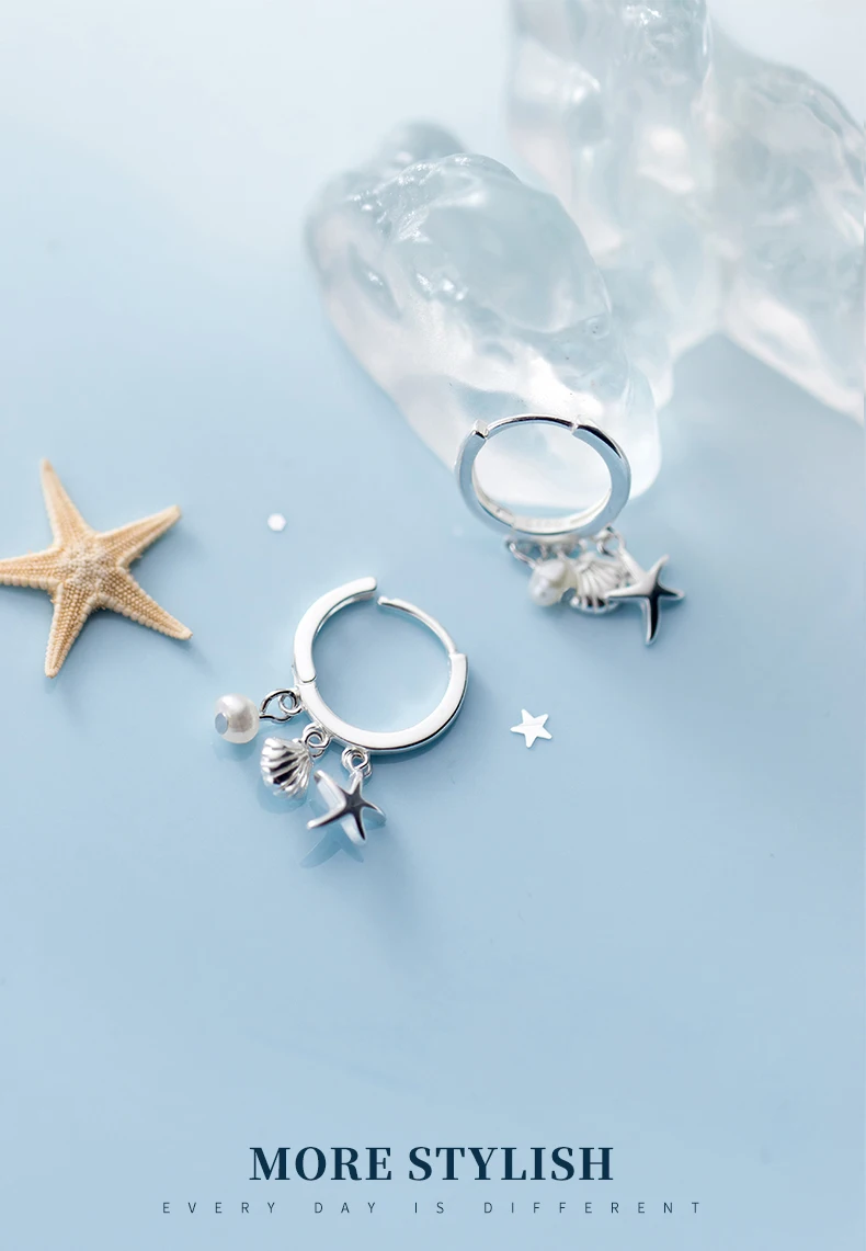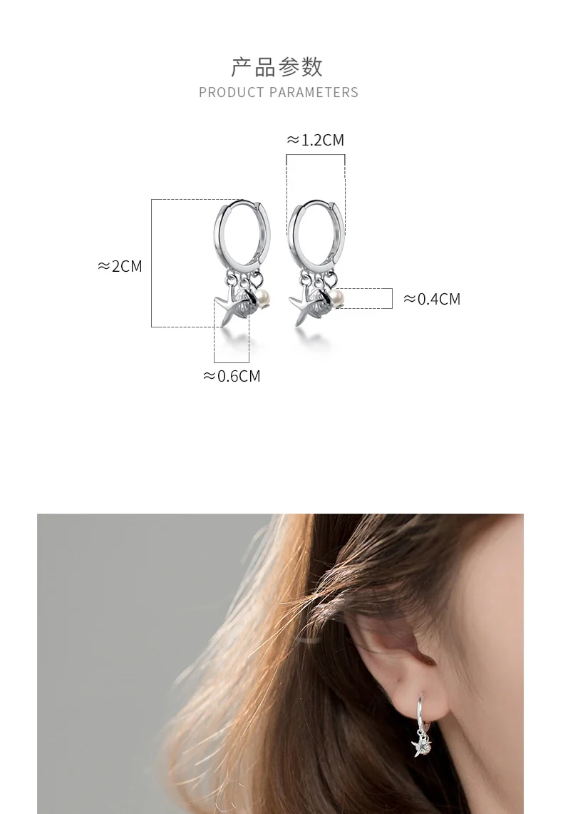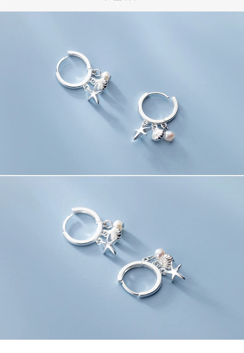 TrustDavis 100% 925 Real Sterling Silver Seastar Pearl Hoop Earrings Jewerly Gift For School Girls Daughter's Gift DS524