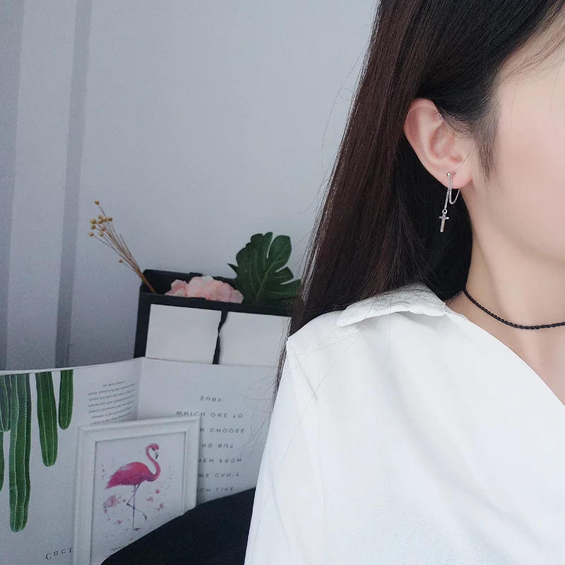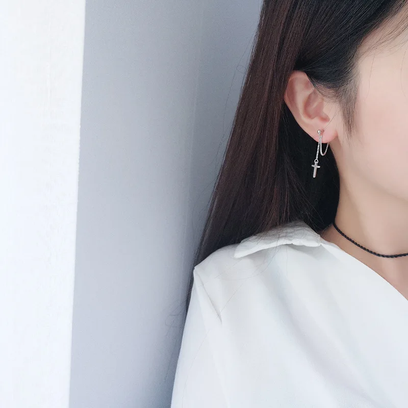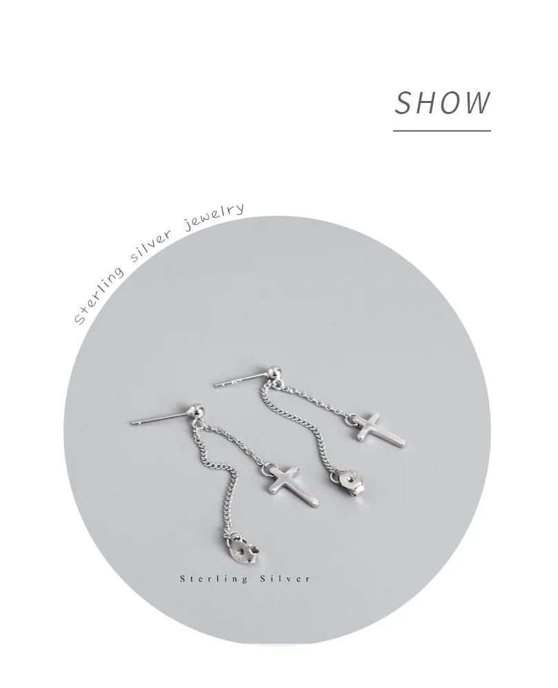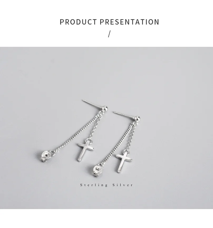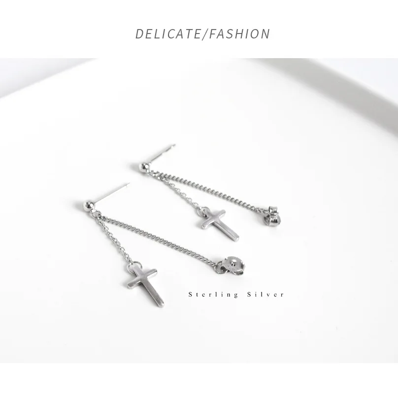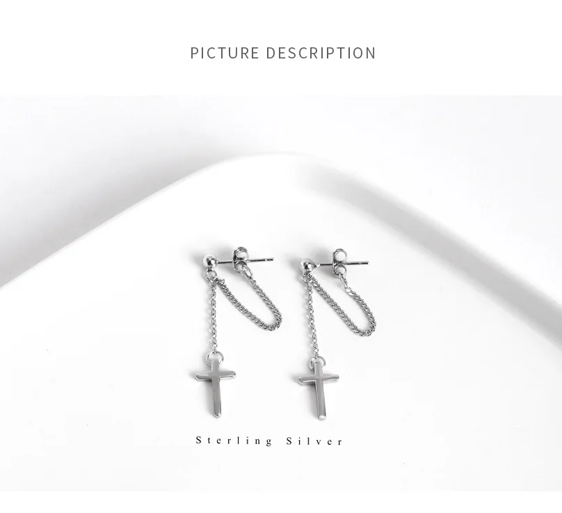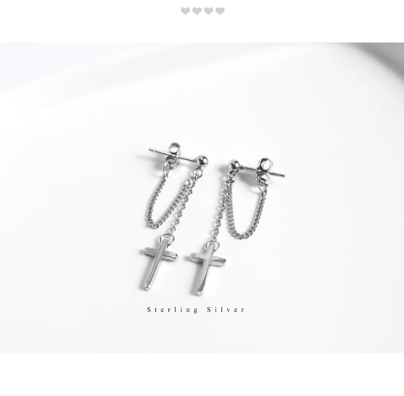 TrustDavis 100% 925 Sterling Silver Cross Chain Stud Earrings Beautiful For Women Lady Silver 925 Jewelry Gift ED470