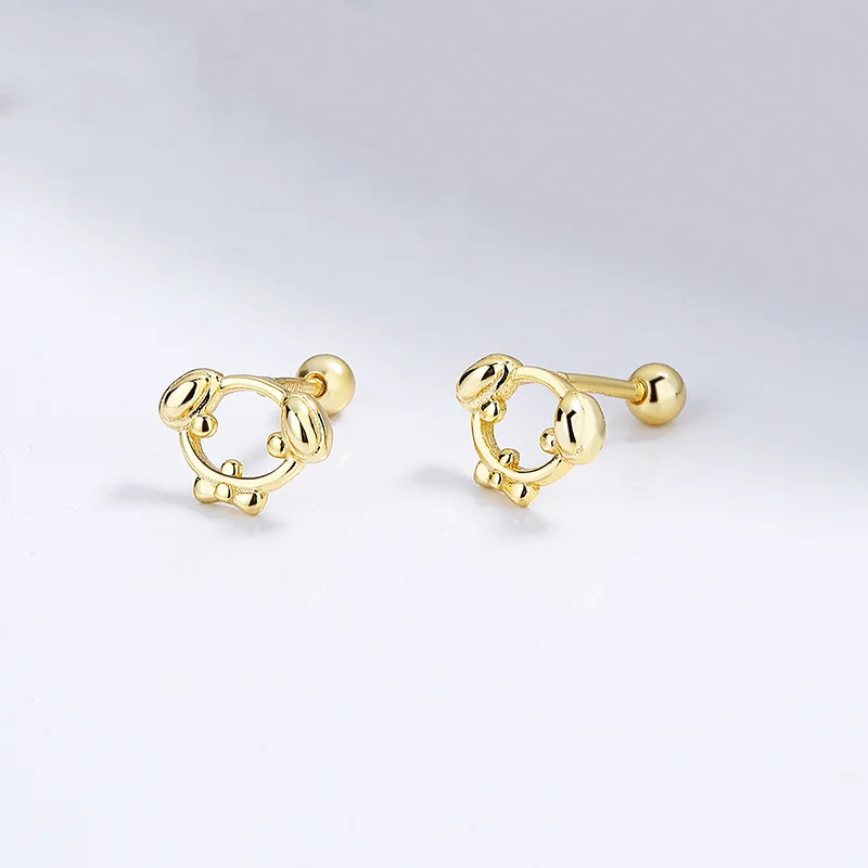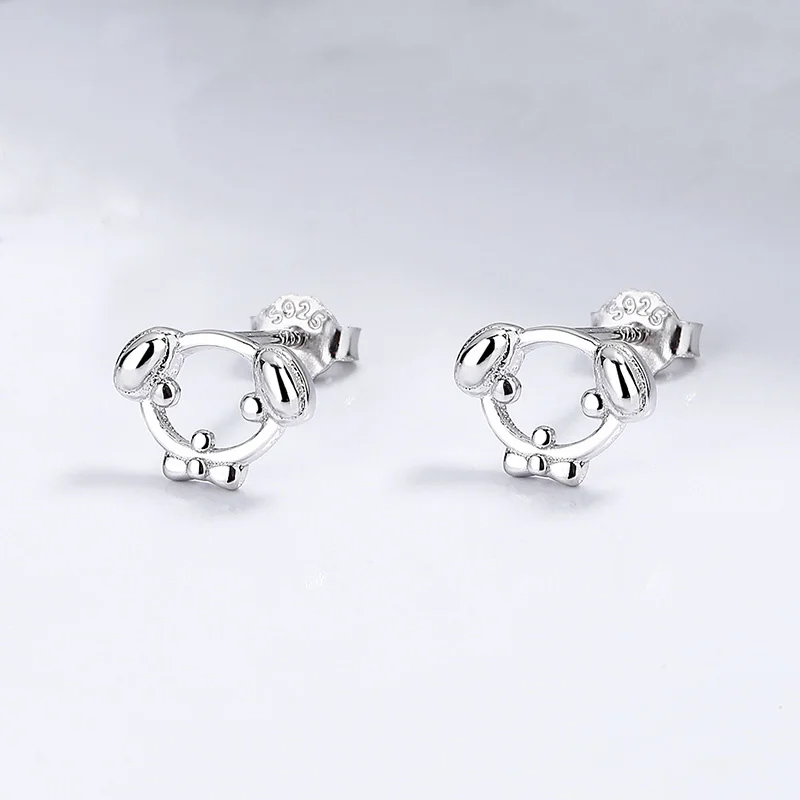 TrustDavis 100% 925 Sterling Silver Cute Little Dog Hollowed Out Stud Earrings for Daughter Girls Teens Lady DS4109