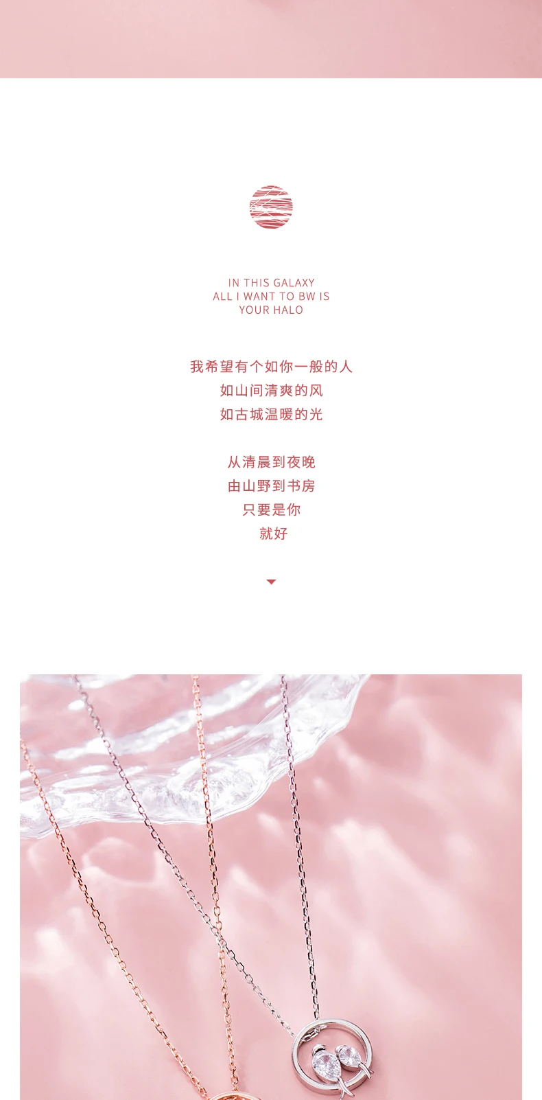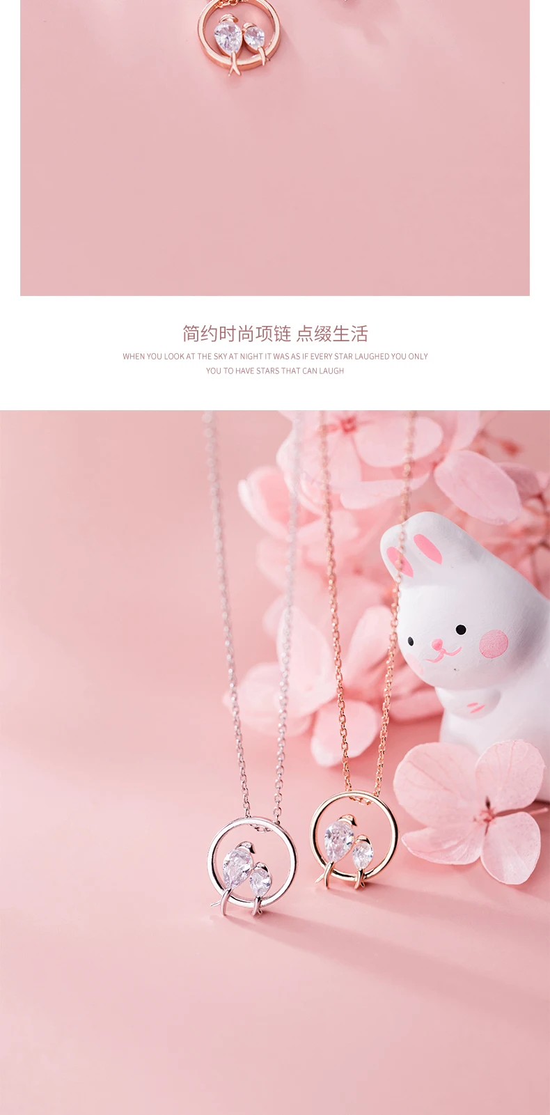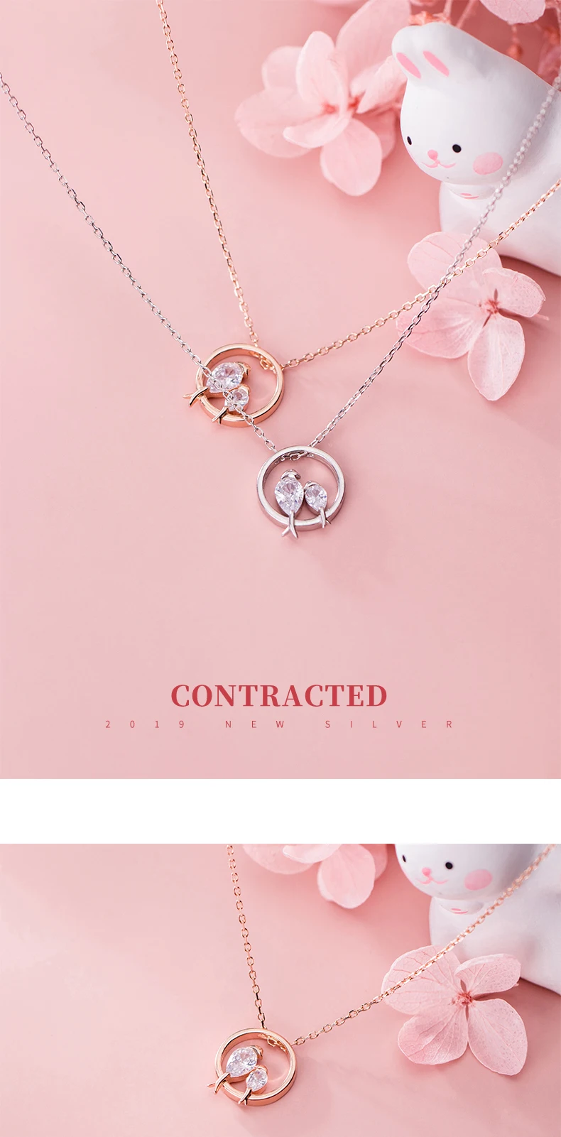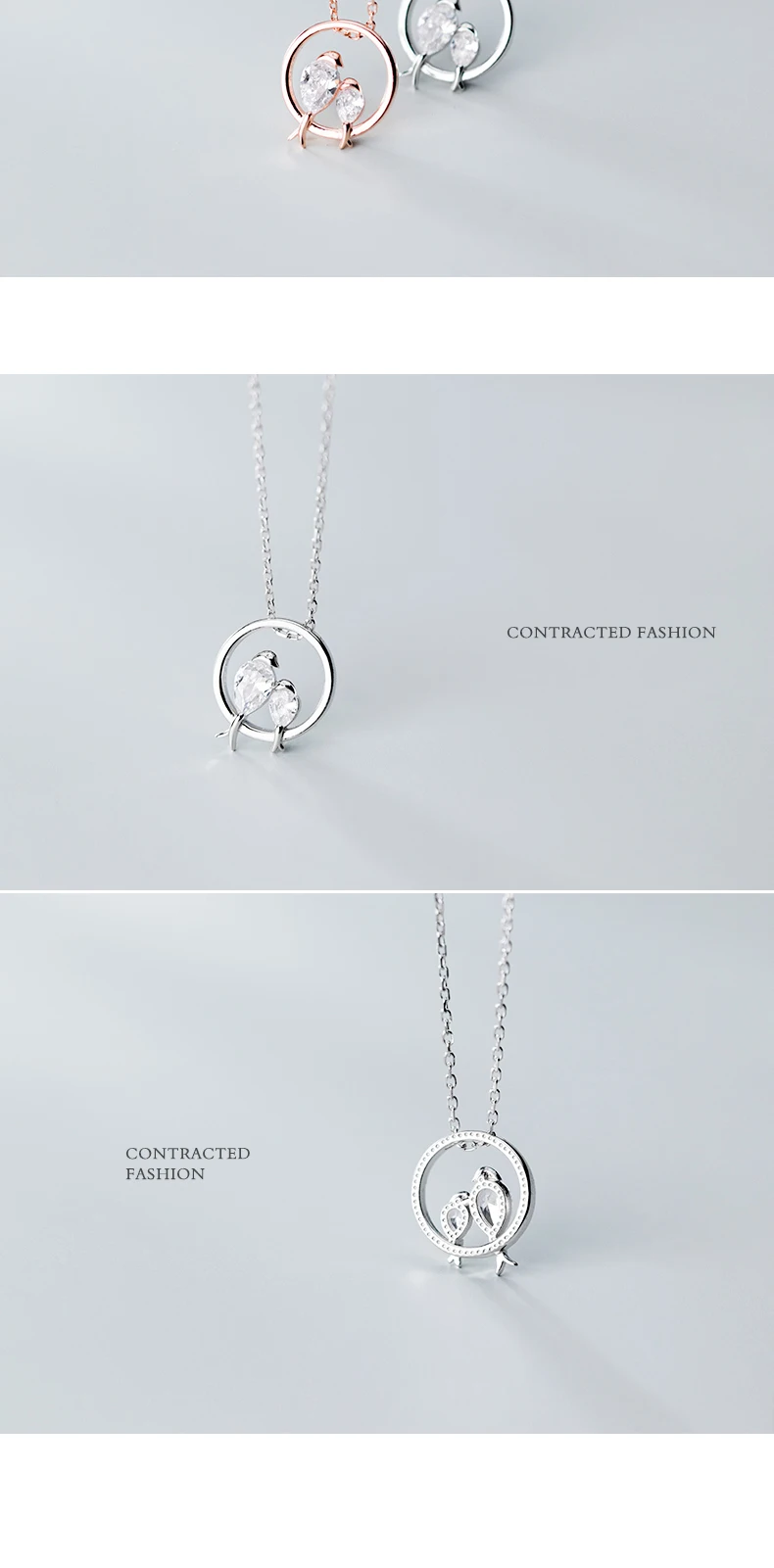 TrustDavis 100% 925 Sterling Silver Dazzling Birds Fall in Love CZ Pendant Necklace for Women Girl Silver 925 Jewelry DA462