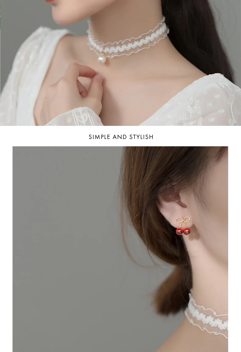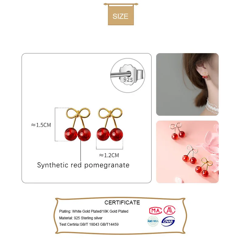 Red Synthetic Red Pomegranate Cherry Stud Earrings DB1065
