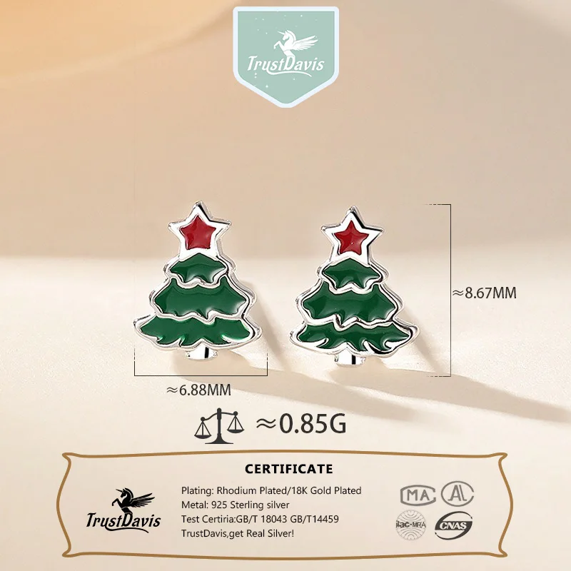 TrustDavis 925 Sterling Silver Cute Reindeer/Christmas Tree/Santa Claus Earrings for Women Girls Christmas Jewelry Gift DS4703