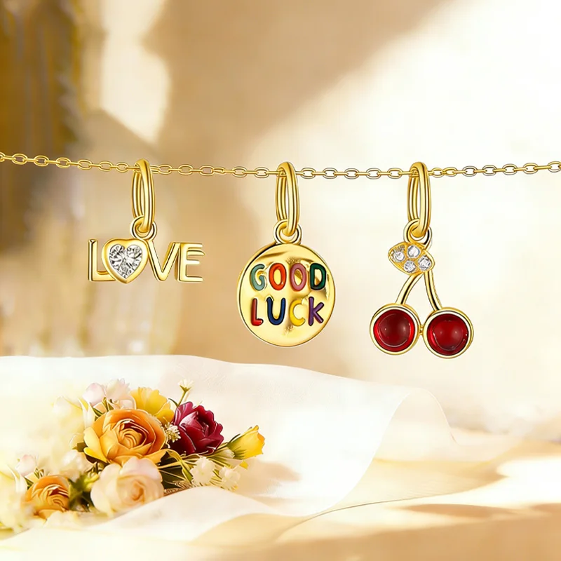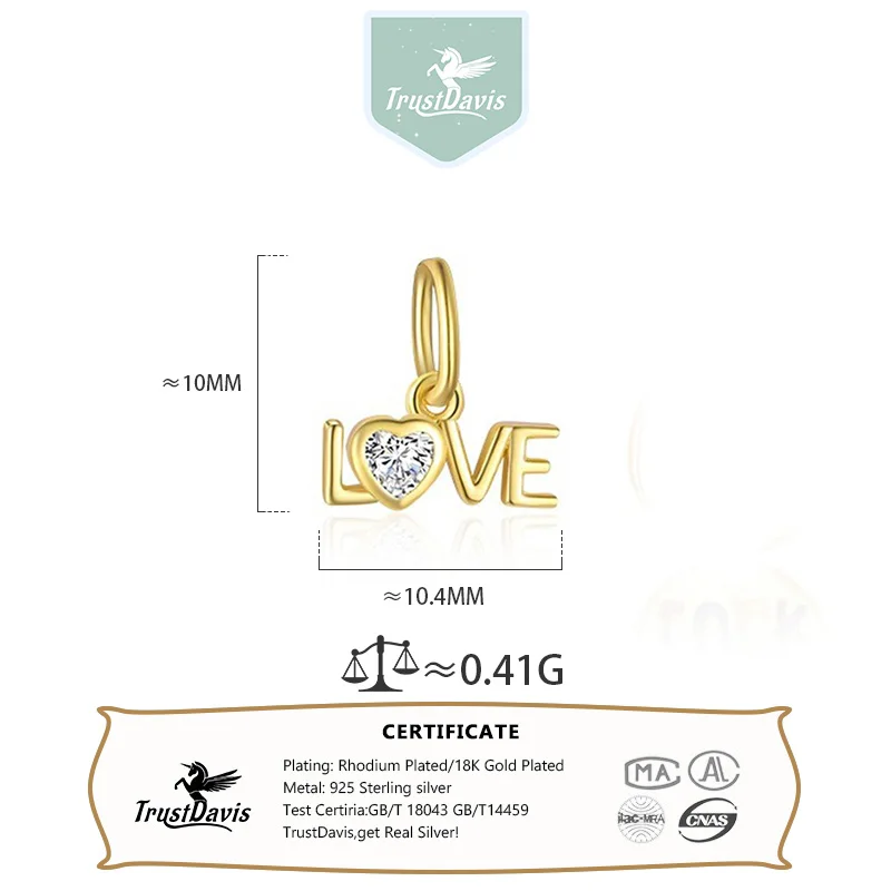 TrustDavis 925 Sterling Silver Cute Valentine’s Day Enamel Heart Pendant DIY Necklace Bracelet Accessories Fine Jewelry DZ1847