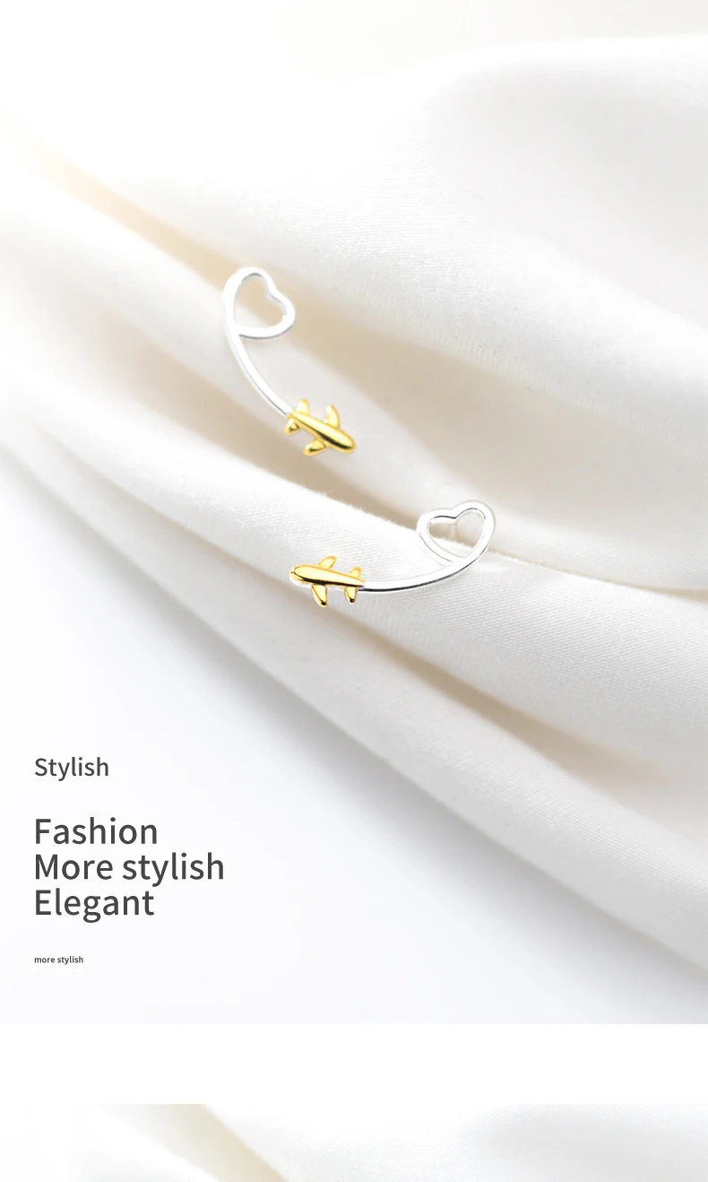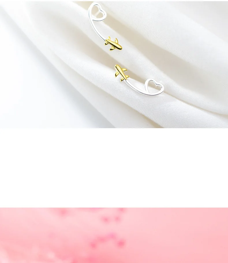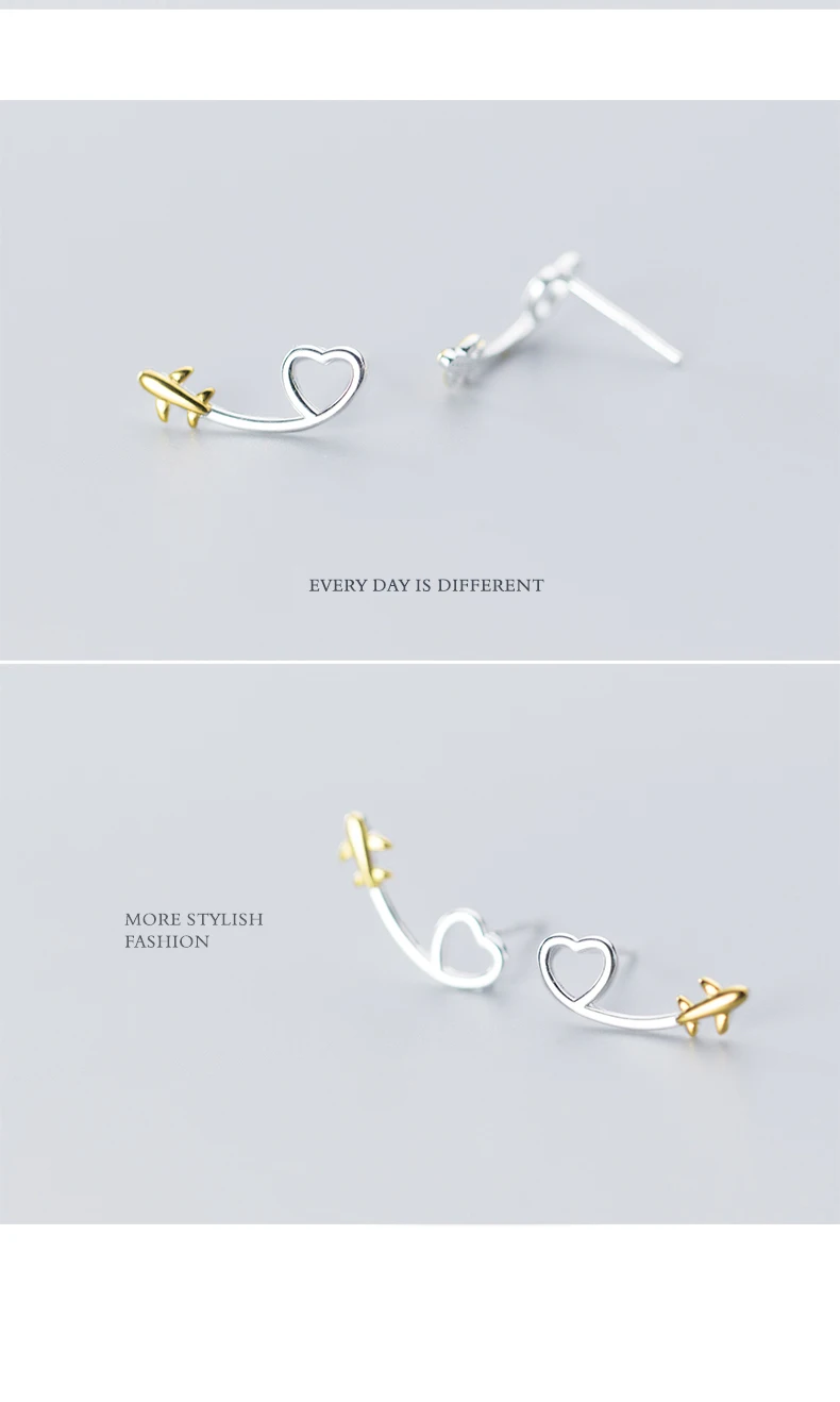 TrustDavis 925 Sterling Silver Earring Jewelry Hollow Heart Plane Stud Earrings Birthday Gift For Women Silver 925 Jewelry DA801