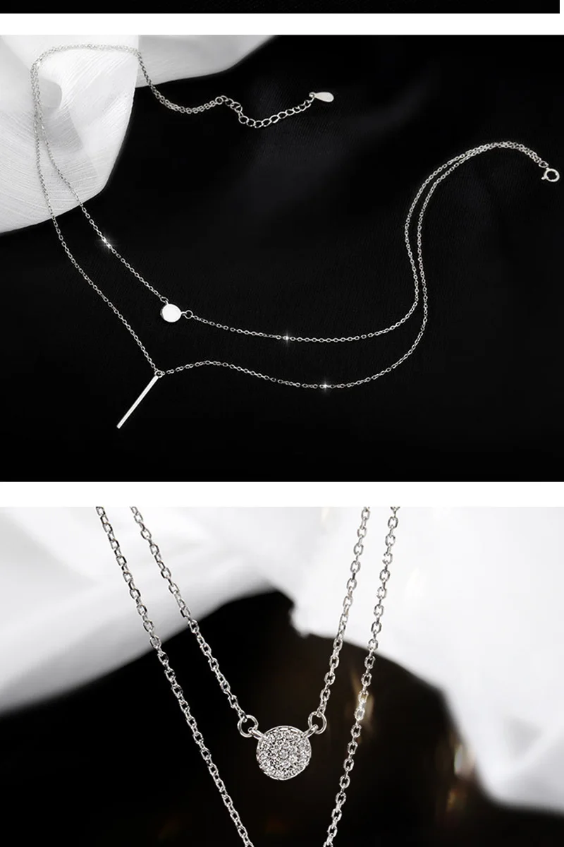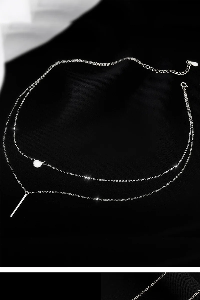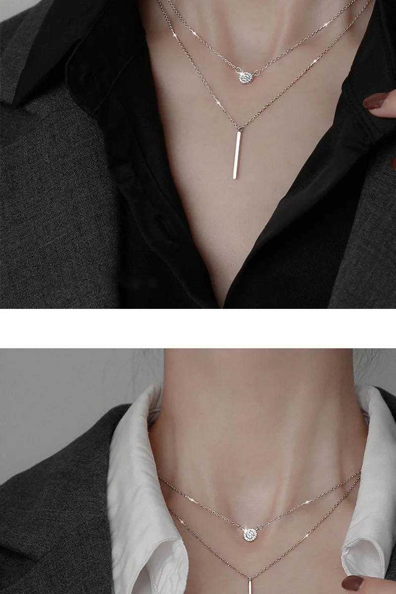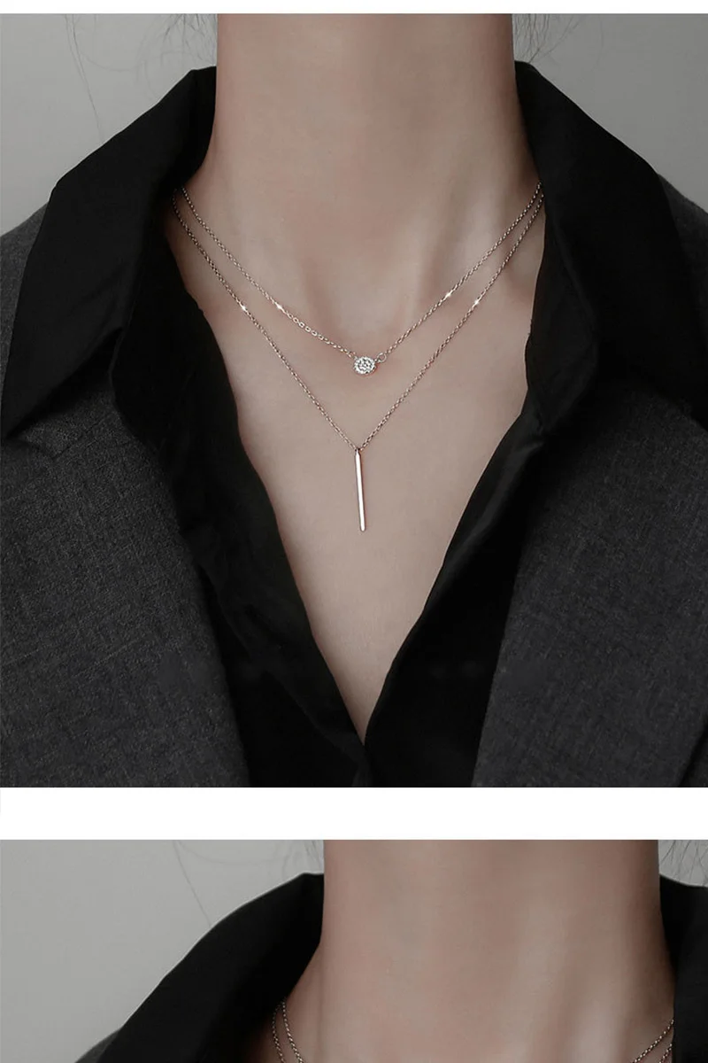 TrustDavis 925 Sterling Silver Elegant Double Layer Geometric Stick Pendant Necklace Fine Jewelry For Women Wedding Party DA1266