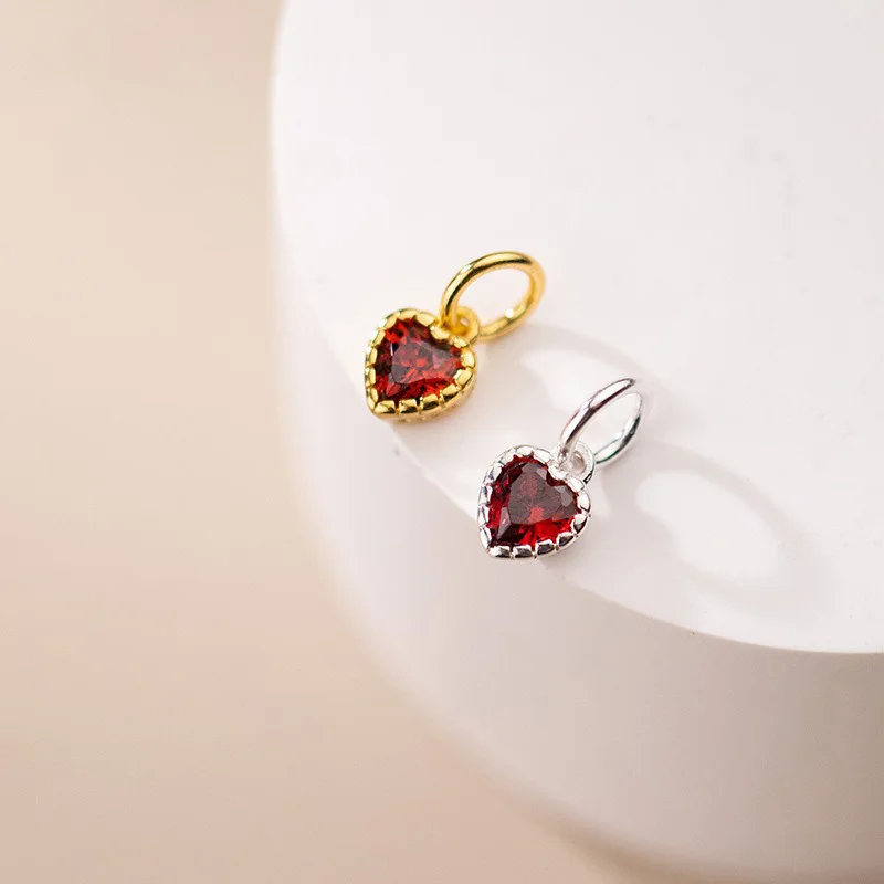 TrustDavis 925 Sterling Silver Fashion Cute Colorful Zircon Heart Pendant DIY Necklace Bracelet Accessories Fine Jewelry DZ1844