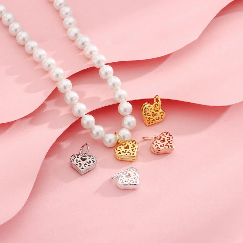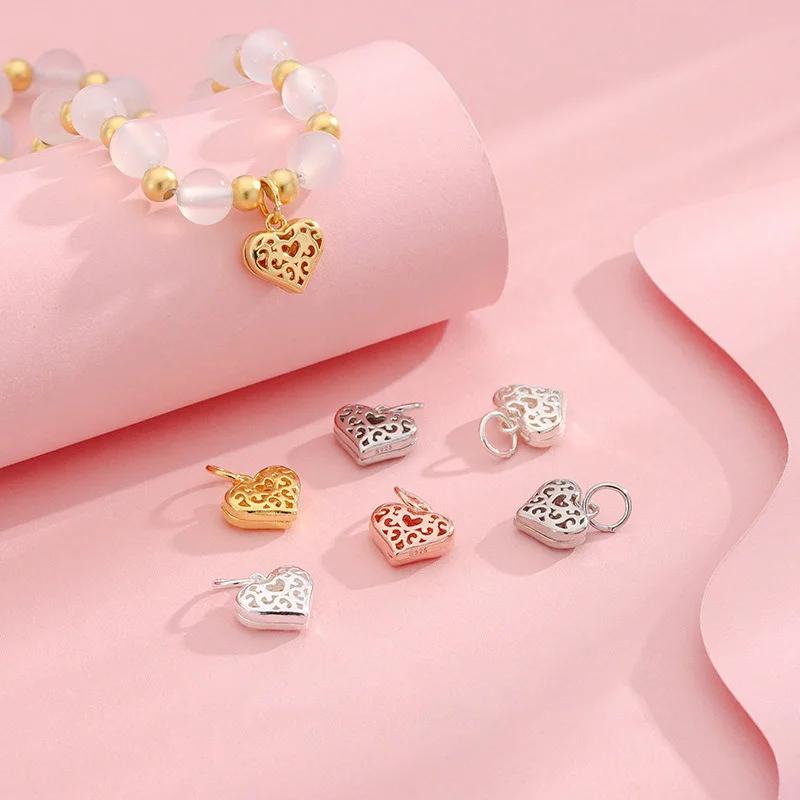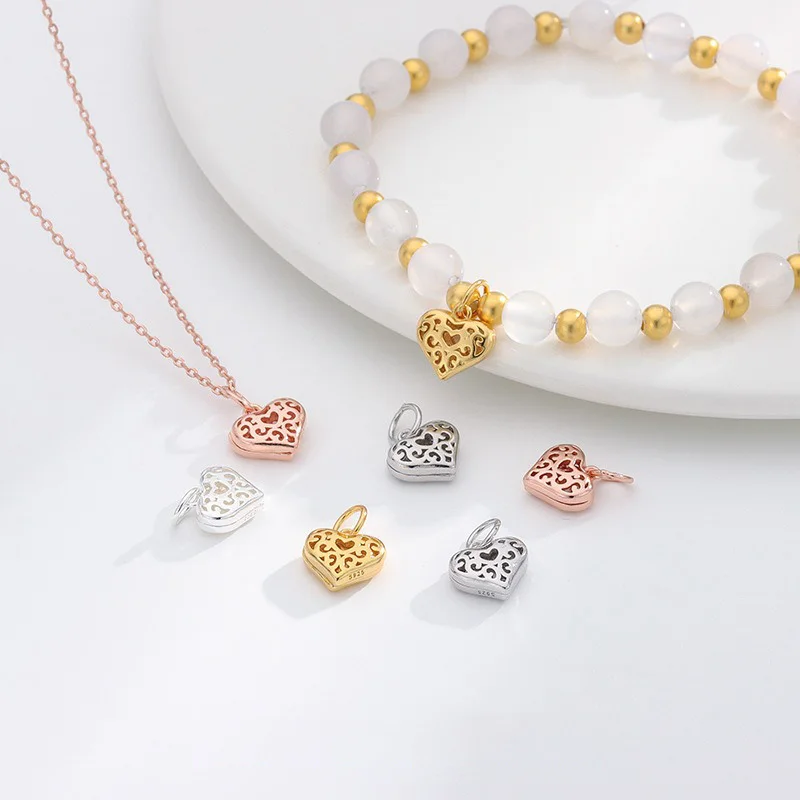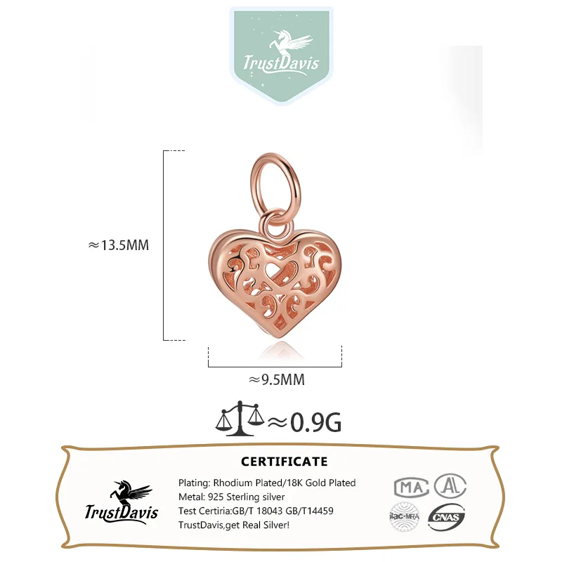 TrustDavis 925 Sterling Silver Fashion Cute Hollow Pattern Heart Pendant DIY Necklace Bracelet Accessories Fine Jewelry DZ1848