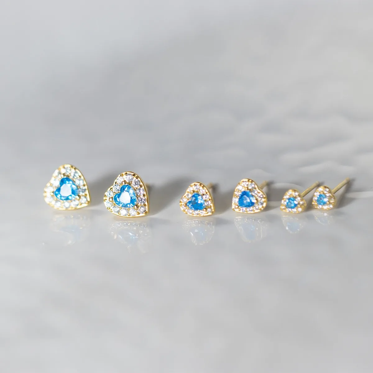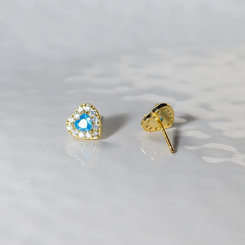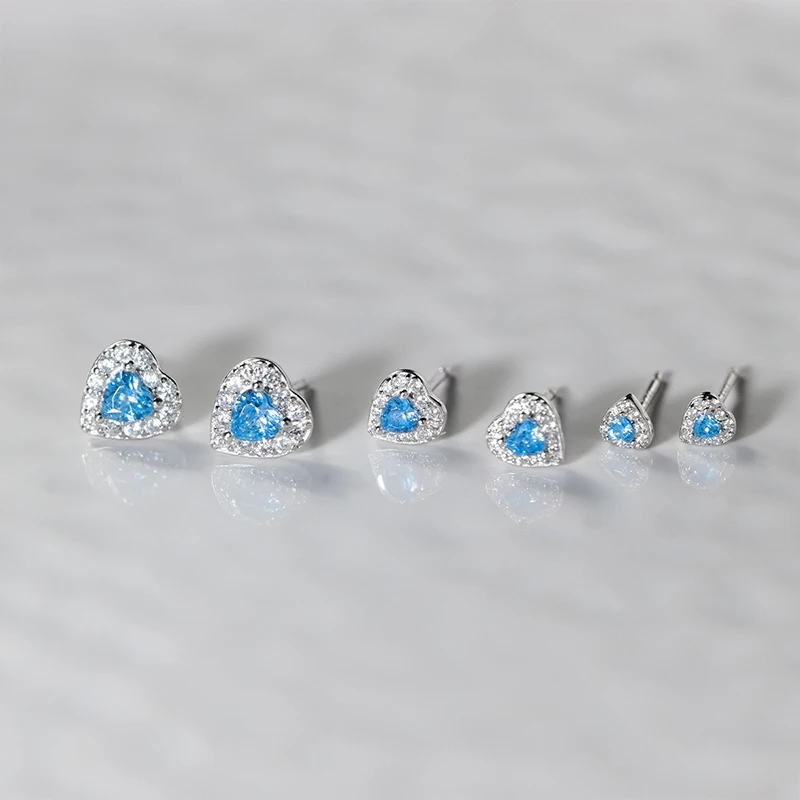 TrustDavis 925 Sterling Silver Fashion Heart Shaped Earrings Blue Diamond Stud Earrings for Women Fine Jewelry Gift DS4167