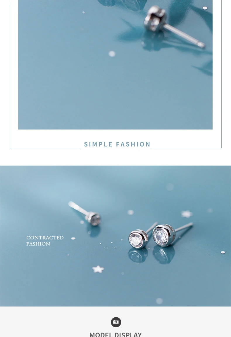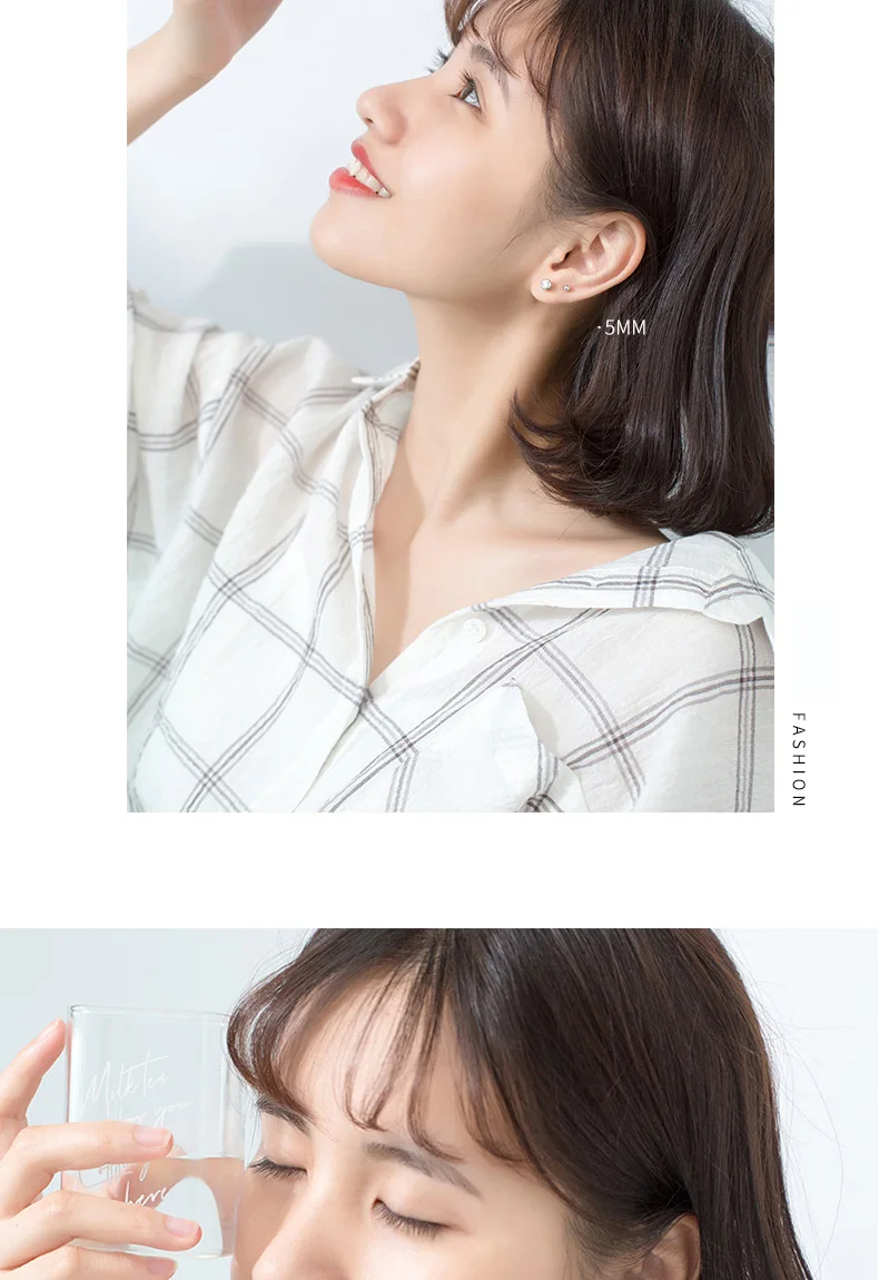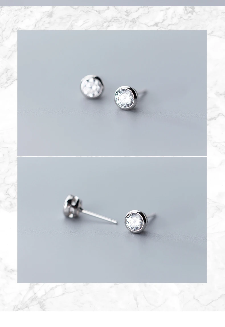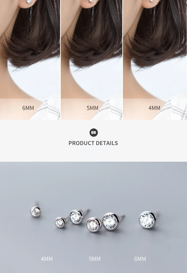 TrustDavis 925 Sterling Silver Tiny Dazzling Round CZ 4mm 5mm 6mm Stud Earring For Women Girls Kids Silver 925 Jewelry Gift DT55
