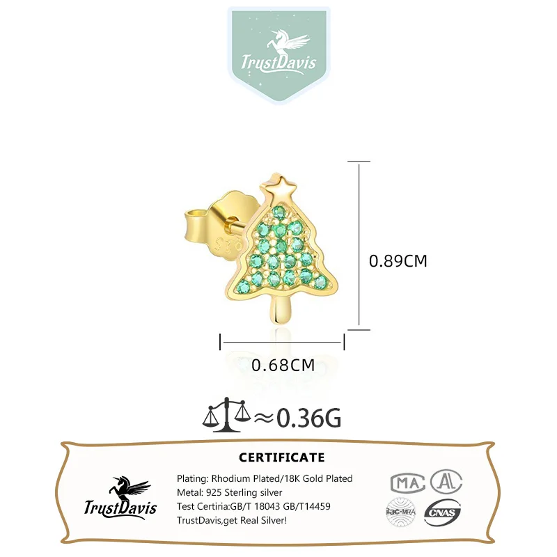 TrustDavis 925 Sterling Silver Women's Fashion Simple Christmas Tree Snowman Set for Women Girls Christmas Jewelry Gift DS4696