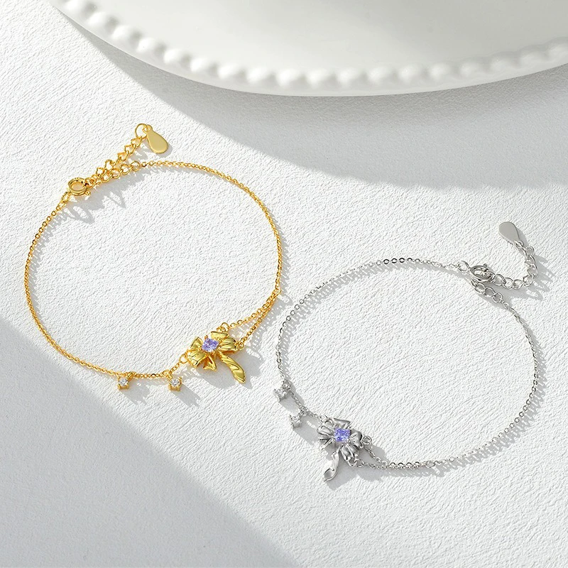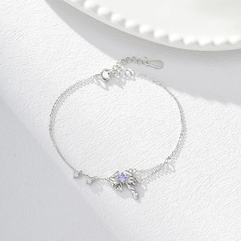 TrustDavis 925 Sterling Silver Women's Fashion Simple Smart Bowknot Zircon Bracelet for Women Girls Jewelry Gift DS4441