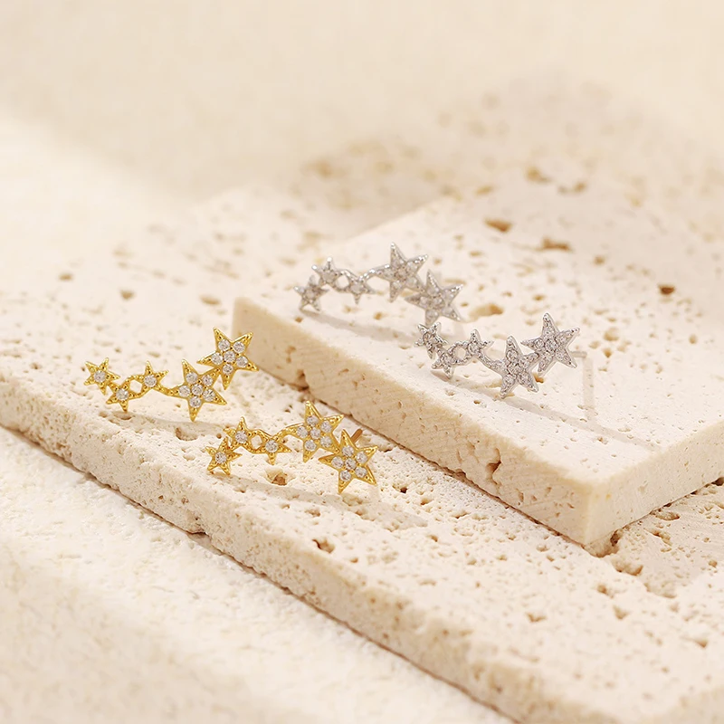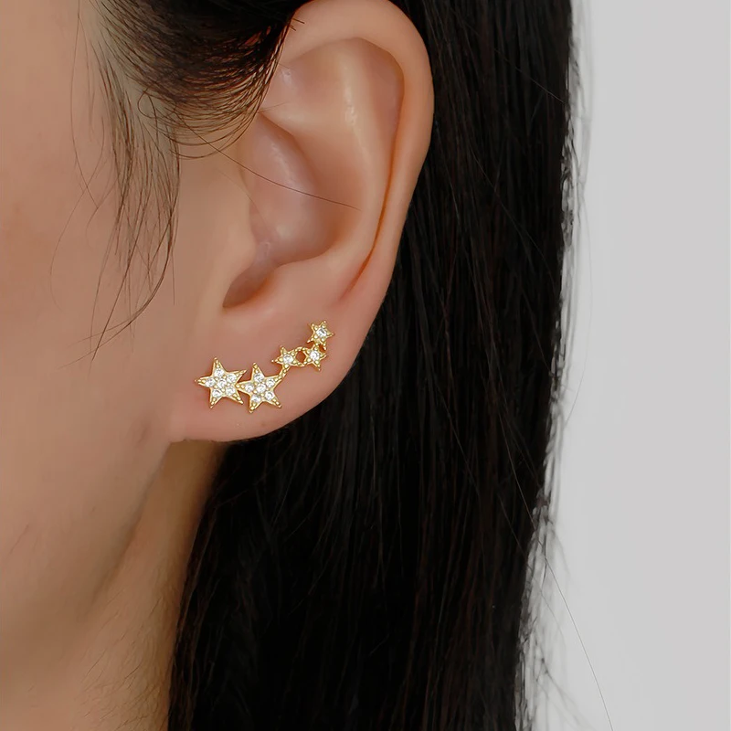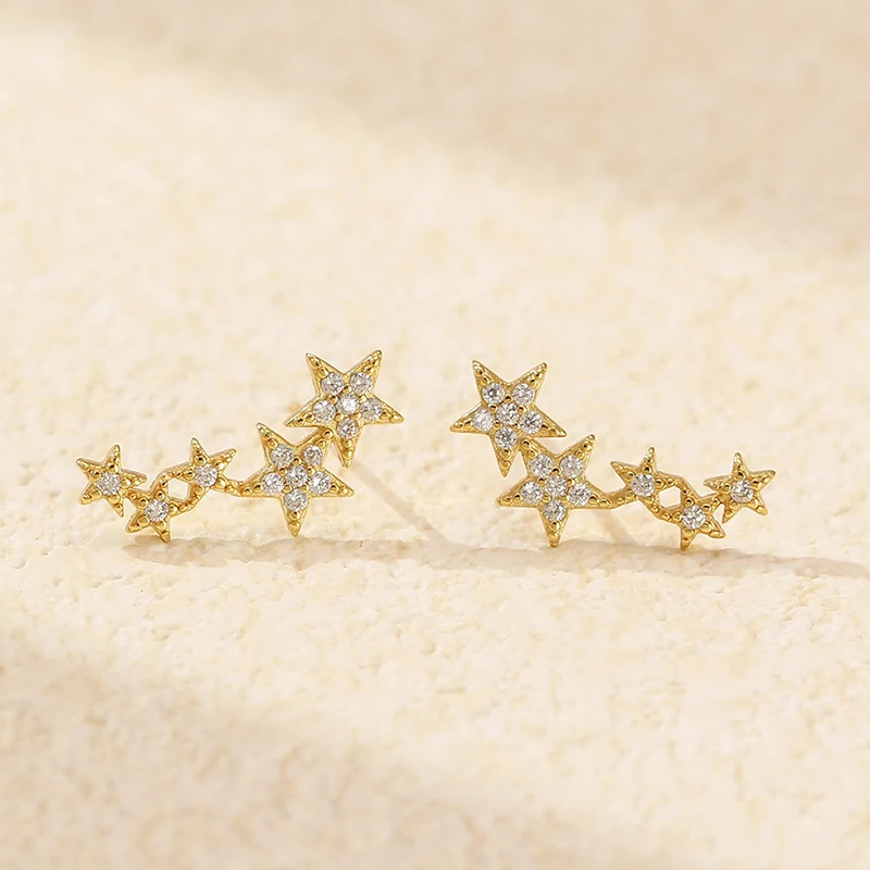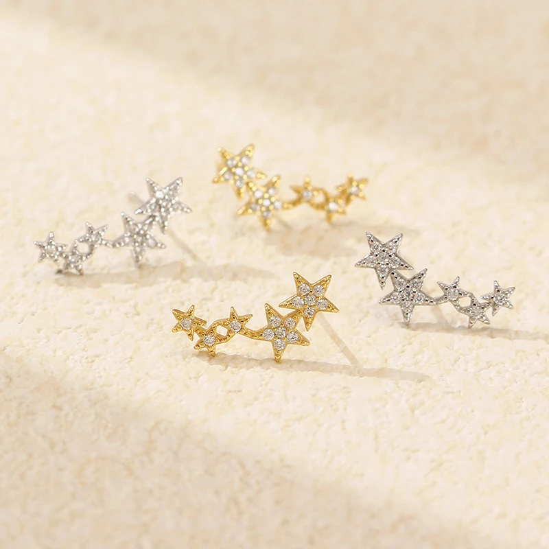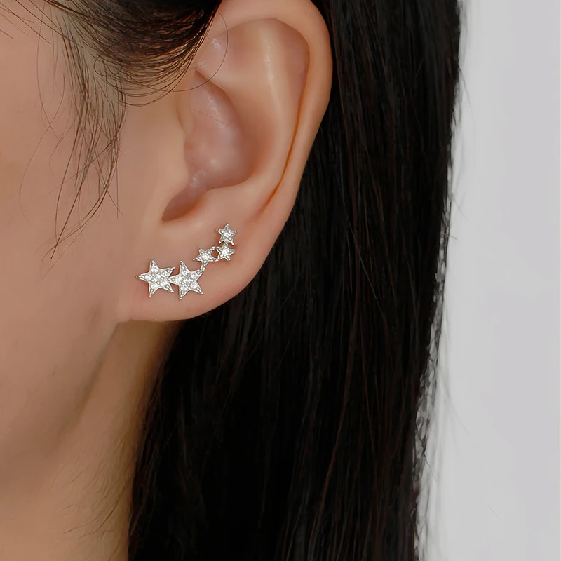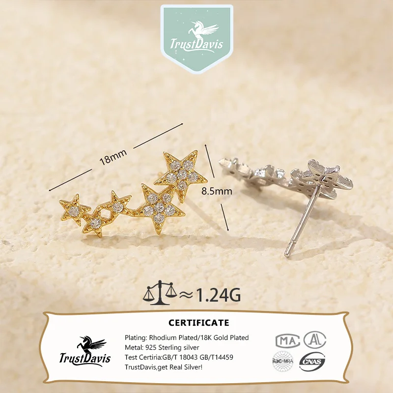 TrustDavis 925 Sterling Silver Women's Fashion Simple Star Zircon Earrings for Women Girls Birthdays Jewelry Gift DS4698