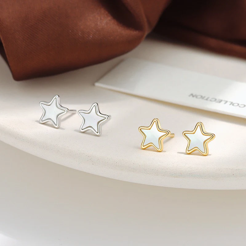 TrustDavis 925 Sterling Silver Women's Fashion Simple White Mother-of-pearl Star Earrings for Women Girls Jewelry Gift DS4664