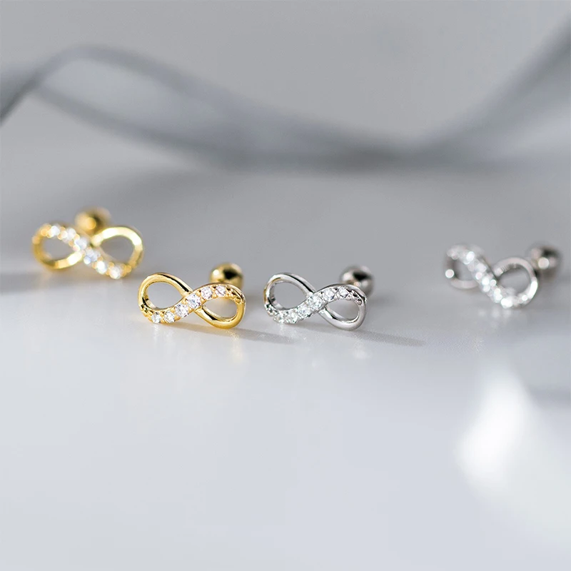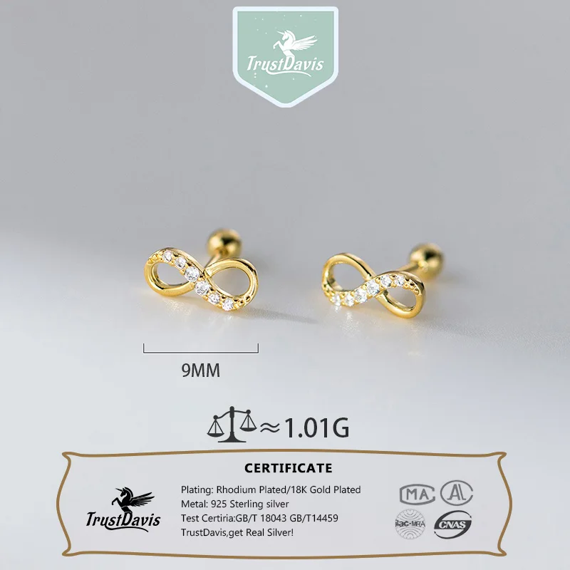 TrustDavis 925 Sterling Silver Women's Fashion Simple Zirconia Infinity Stud Earrings for Women Girls Jewelry Gift DS4651