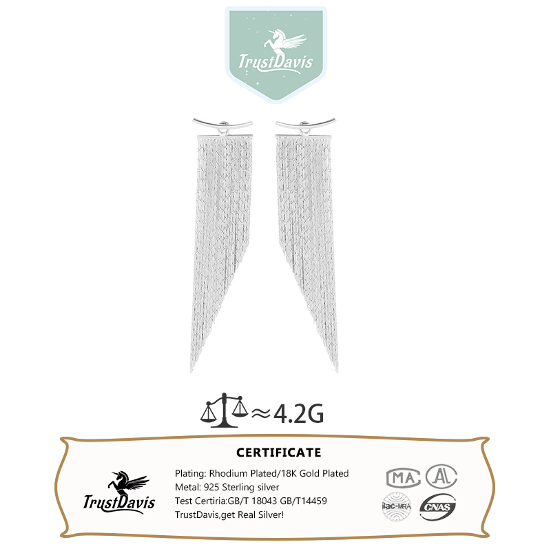 TrustDavis 925 Sterling Silver Women's High-end Waterfall Tassel Earrings for Women Girls Jewelry Gift DS4796