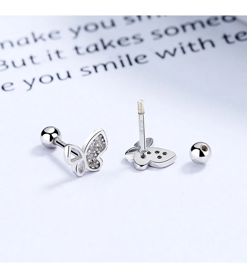 Fashion Sweet Insect Butterfly CZ Screw Stud Earrings DA2519