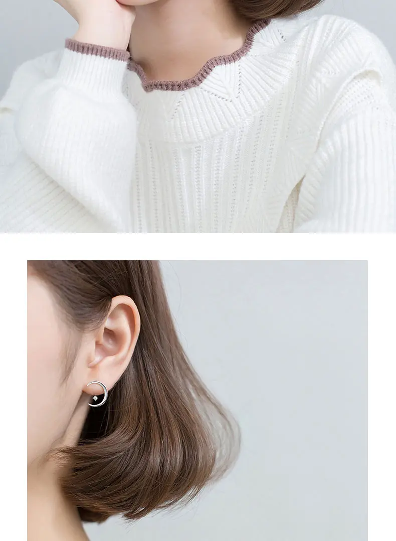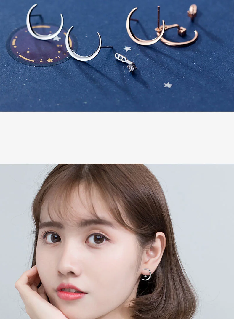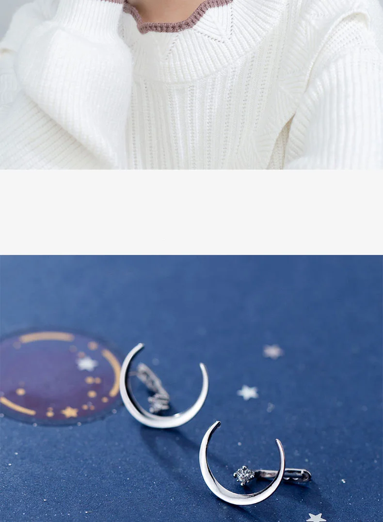 Fashion Moon Shiny CZ Stud Earrings DS1872