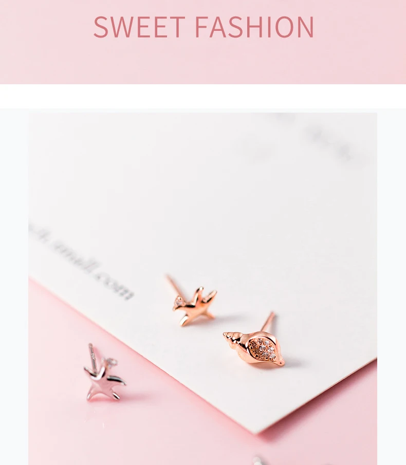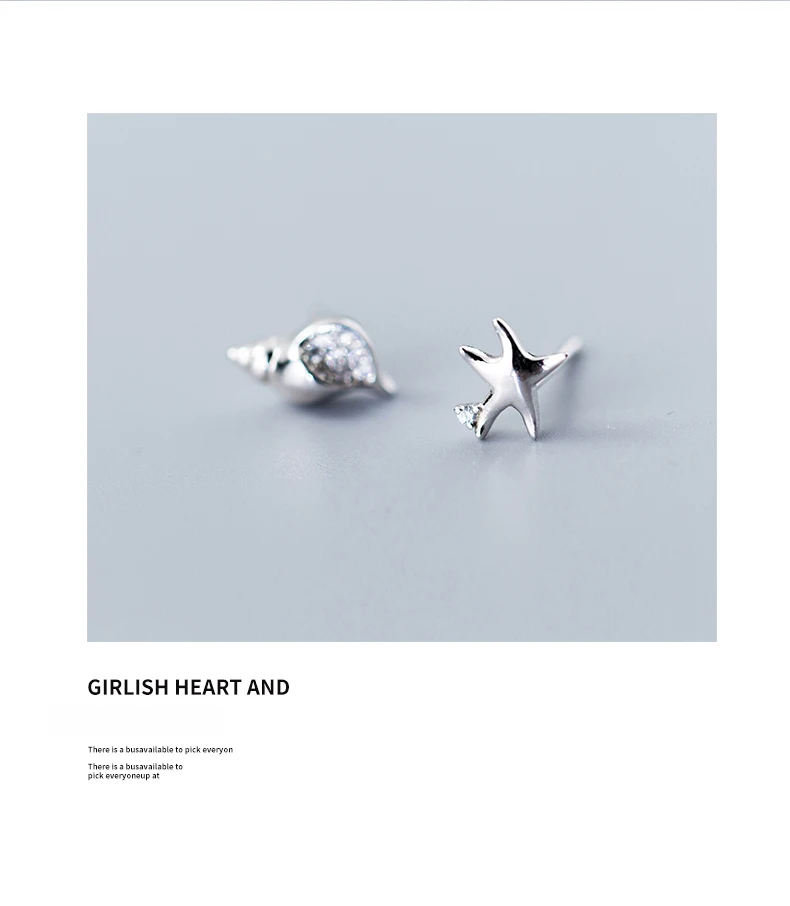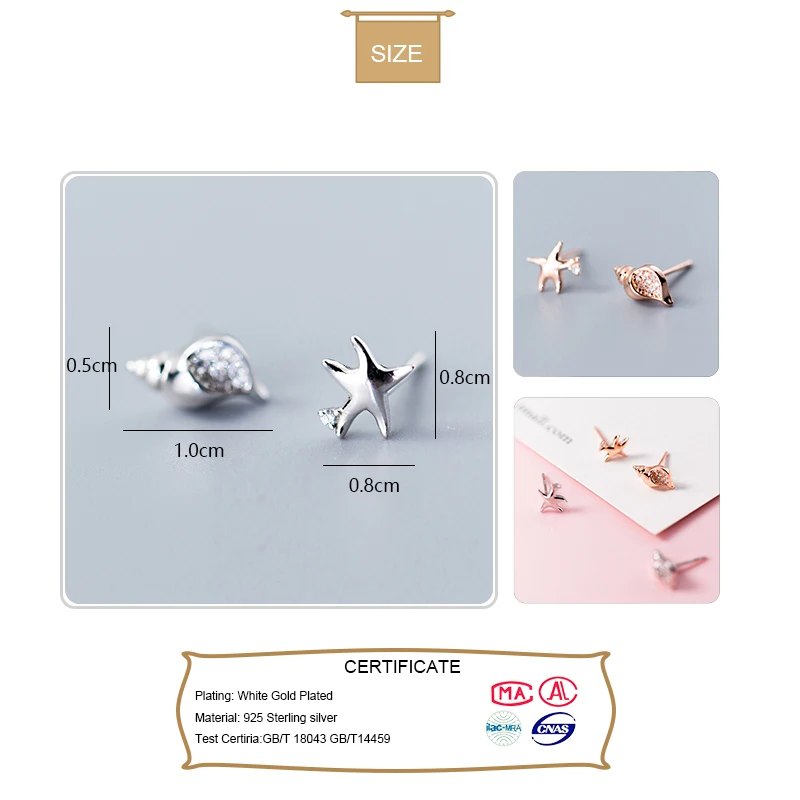 TrustDavis Genuine 925 Sterling Silver Asymmetric Conch Starfish CZ Stud Earrings For Fashion Woman Party Fine Jewelry DA1219