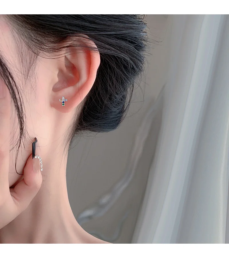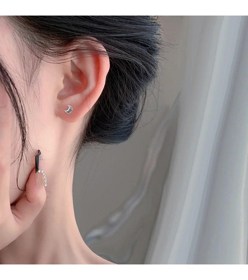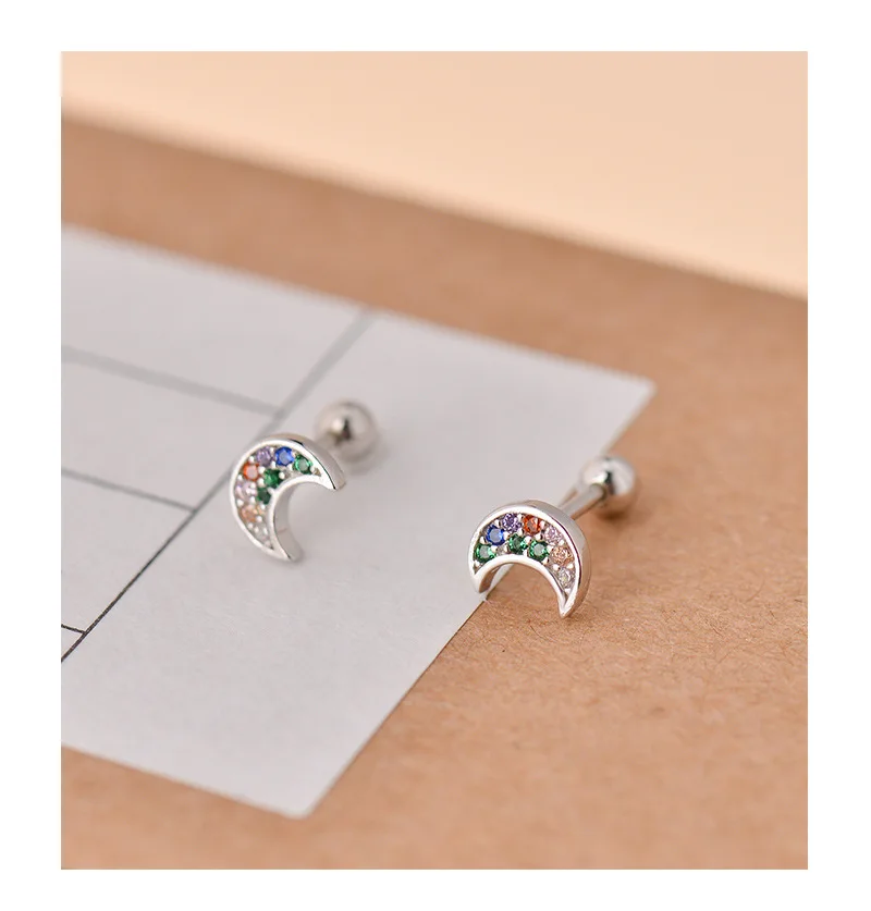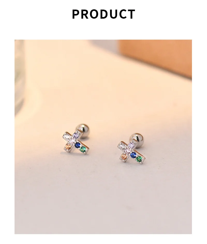 Corss Moon Bead Screw Stud Earrings DS4143
