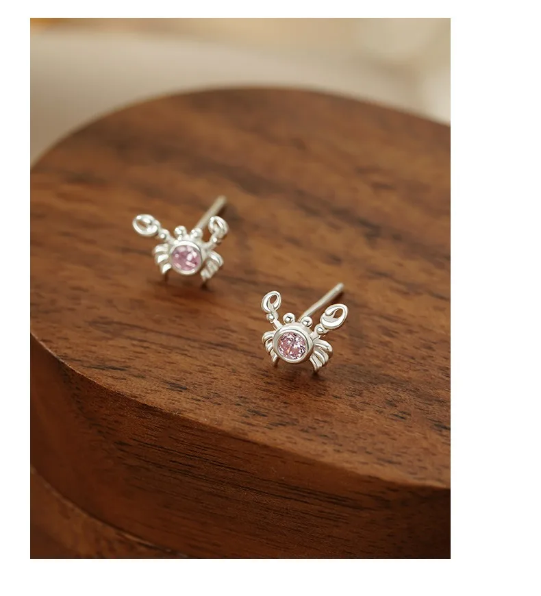 Trustdavis Girls Real 925 Sterling Silver Cute Animal Crab Stud Earrings for Girls Daughter Birthday Party Gift Jewelry DS4196