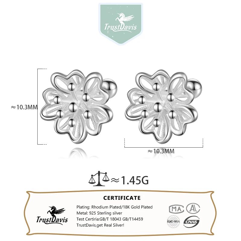 Trustdavis Girls Real 925 Sterling Silver Cute Openwork Flowers Stud Earrings Women Daughter Birthday Party Gift Jewelry DS4414