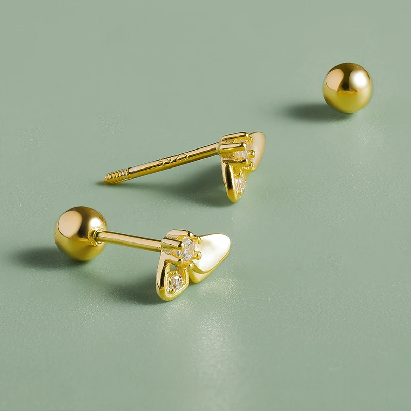 TrustDavis Girrls 925 Sterling Silver Sweet Butterfly CZ Stud Earrings for Women Girls Birthday Gift Jewelry DS4580