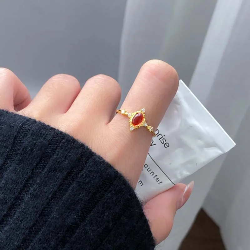 Trustdavis Girsl 925 Sterling Silver Retro Luxury Red Oval Stone Best Wish Rings for Women Wedding Fine Jewelry Gift DS4561