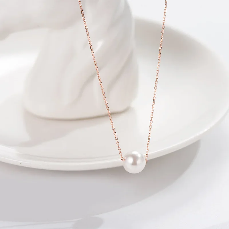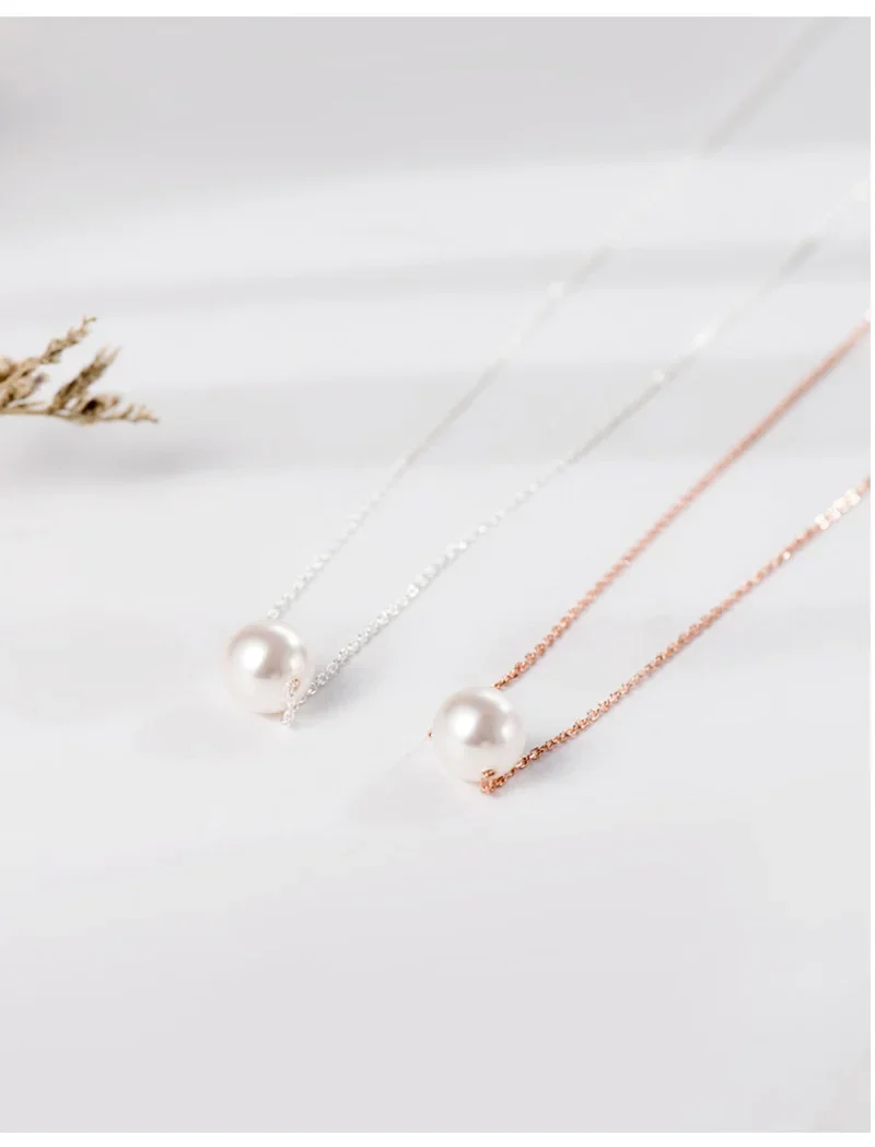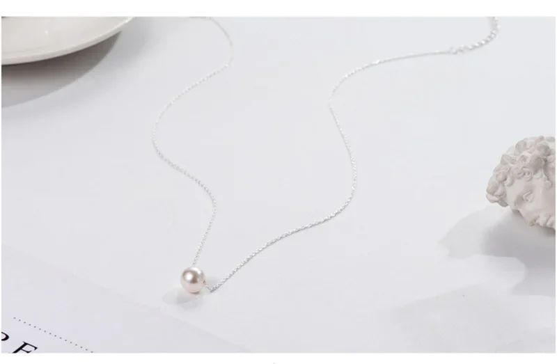 TrustDavis Minimalist 925 Sterling Silver Fashion Sweet 9mm Pearl Pendant Necklace For Women Party 925 Necklace Jewelry YQ193