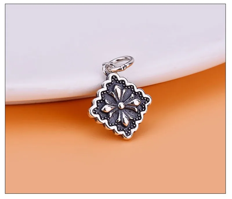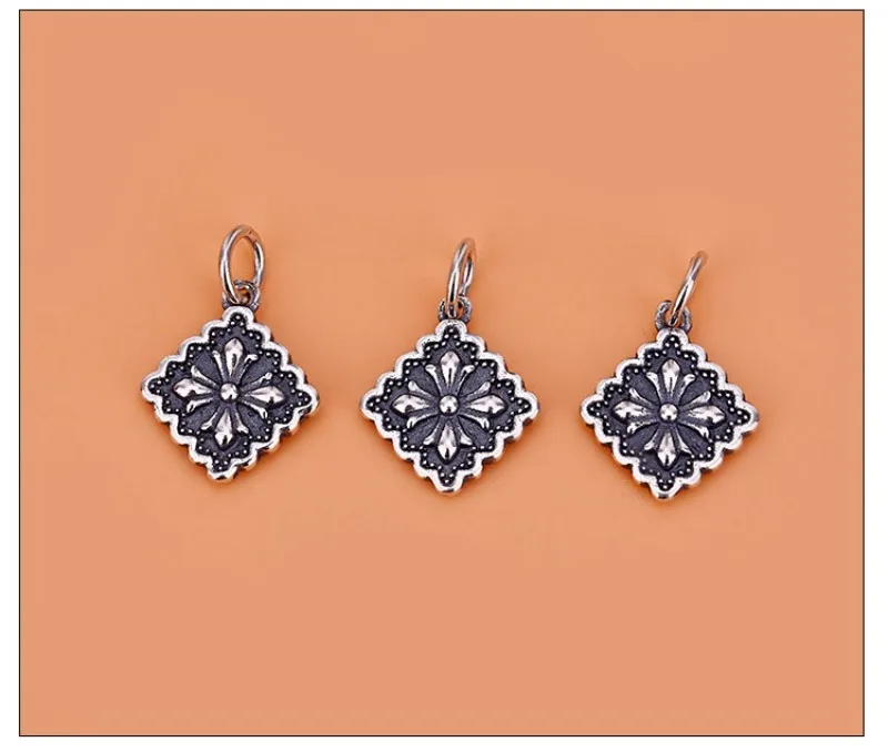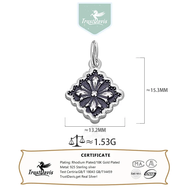 TrustDavis New Fashion Real 925 Sterling Silver Cross Square Pendant Handmade DIY Accessories Jewelry Wholesale DZ1731