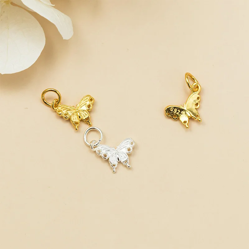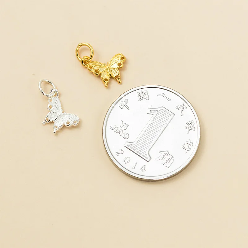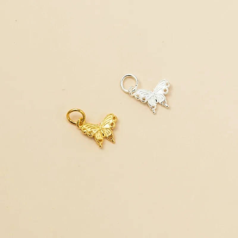 TrustDavis New Fashion Real 925 Sterling Silver Fashion Golden Butterfly Charm Pendant Handmade DIY Accessories Jewelry DZ1802