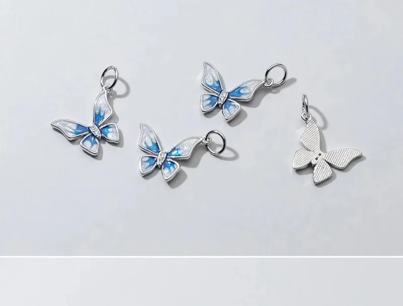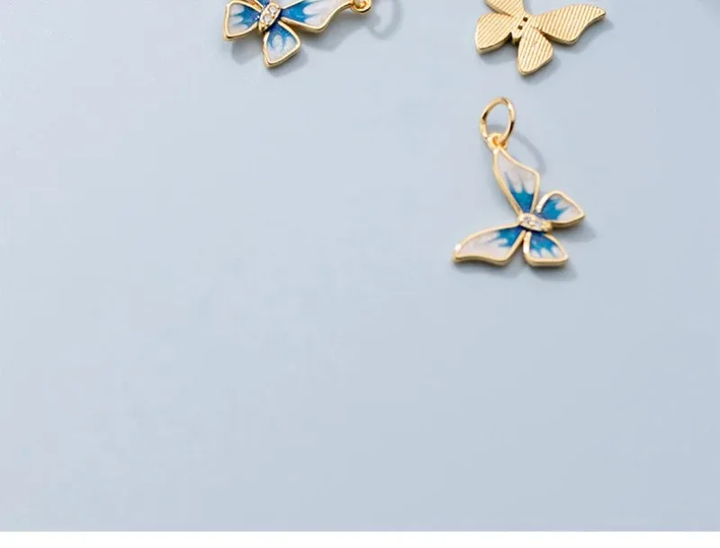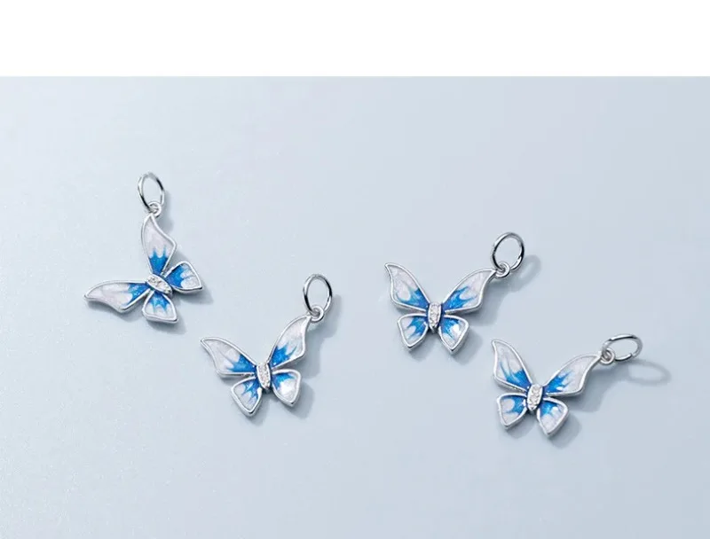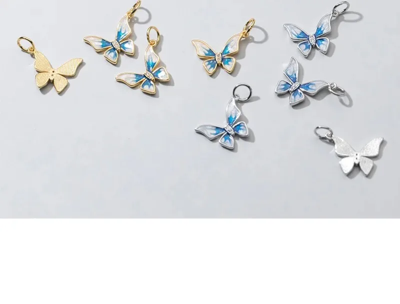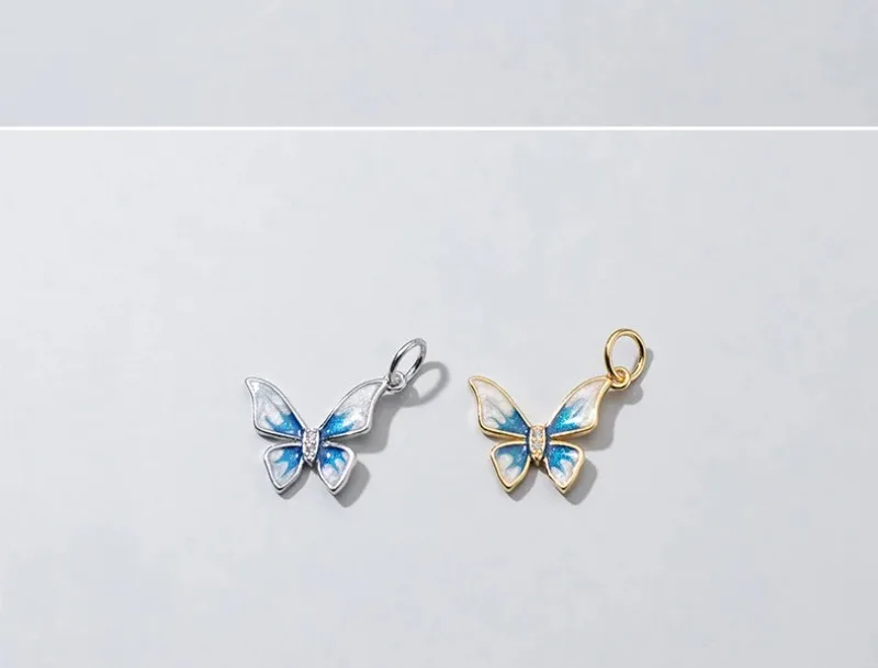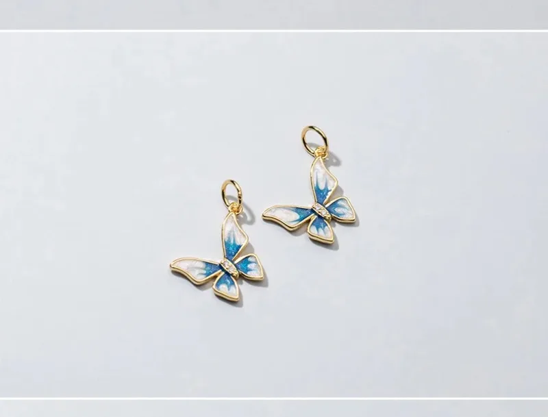 TrustDavis New Real 925 Sterling Silver Fashion Glaze Insect Butterfly CZ Charm Pendant Handmade DIY Accessories Jewelry DZ74