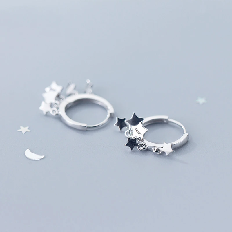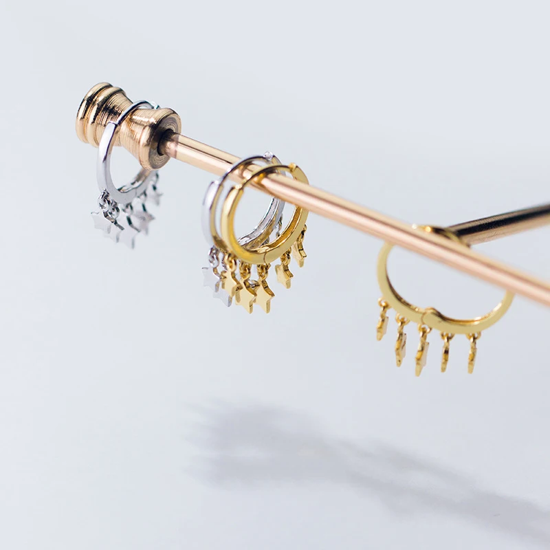 TrustDavis Original 925 Silver Earrings Star Tassel Charm Hoop Earring For Women Wedding 925 Sterling Silver Jewelry Gift DS1104