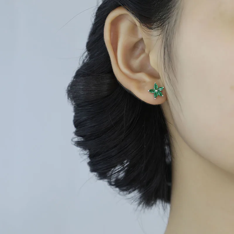 TrustDavis Original Sterling Silver Blue Green Purple CZ Flower Stud Earrings For Women Daughter Girls Fine S925 Jewelry DS4147