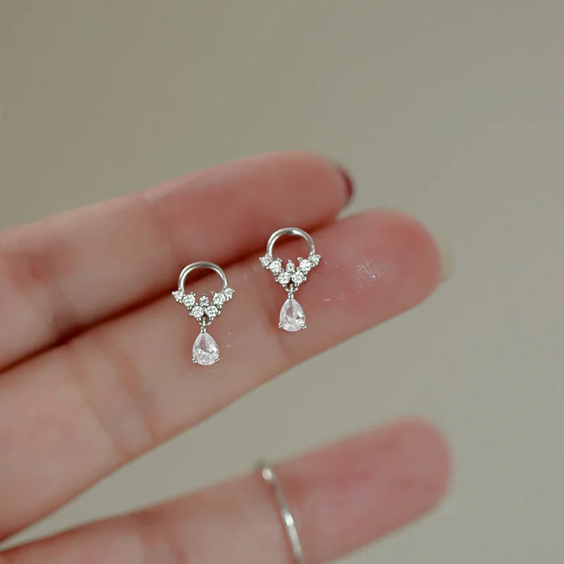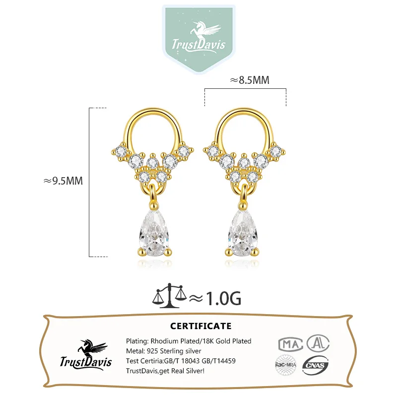 TrustDavis Original Sterling Silver Fashion Luxury Water Drop Stud Earrings for Women Daughter Girls Fine S925 Jewelry DS4399